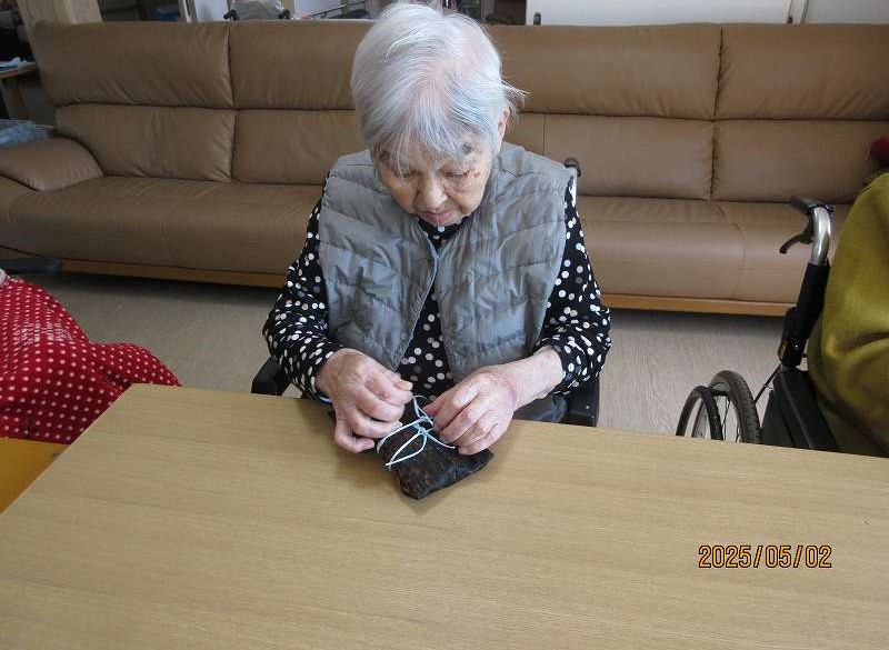 グループホームでも包む作業をしていただきました😊スタッフもお手伝いしつつ、きれいに包んで下さいました♪