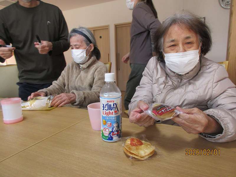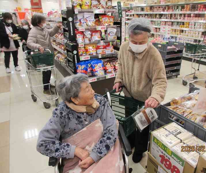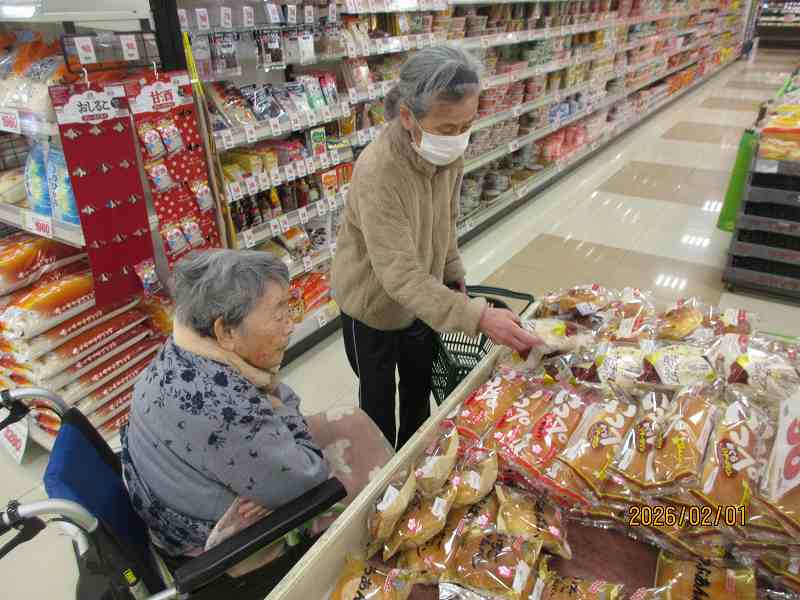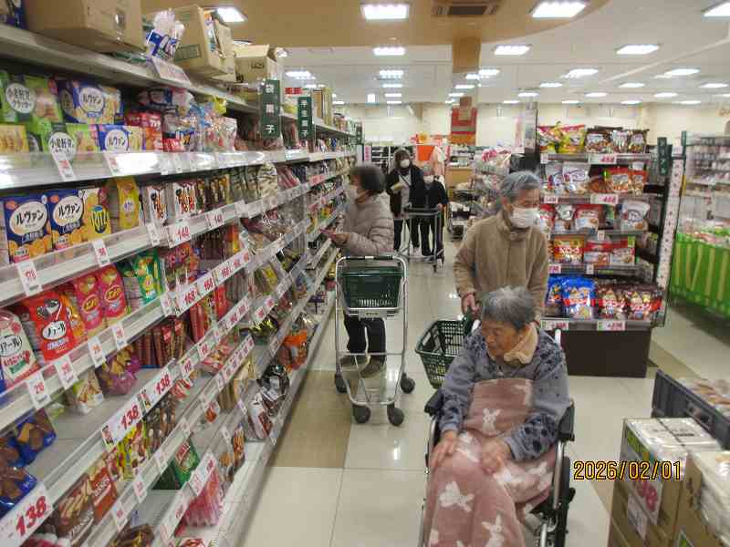 スーパーへお買い物に行ってきました🚙 公開済み: 2026年2月1日更新: 2026年2月4日作成者: さくらの里カテゴリー: イベント 商品をよく吟味されお買い物されていました😊 大好きなメロンパンを購入✨ お目当ての商品が購入でき皆さん嬉しそうでした♪ 関連記事 7/20~31日常風景 公開済み: 2021年7月31日更新: 2022年6月24日作成者: さくらの里カテゴリー: イベント コンビニでお買い物♪別日には鹿児島空港付近へドライブに行ってきました🚙 公開済み: 2026年2月7日更新: 2026年2月15日作成者: さくらの里カテゴリー: イベント 3月7日 木下大サーカスを観に行ってきました🤡利用者・入居者様にお声掛けして、今回は「行きたい!!!」と言われたメンバーでのお出掛けとなりました🎵様々な演目に驚かれながらも、楽しそうに見ておられました😊 公開済み: 2025年3月8日更新: 2025年3月8日作成者: さくらの里カテゴリー: イベント