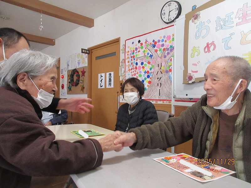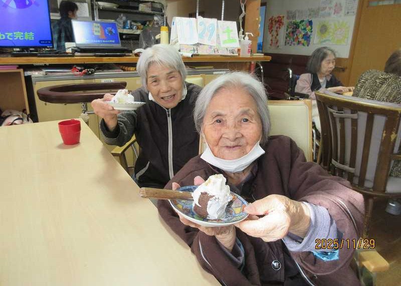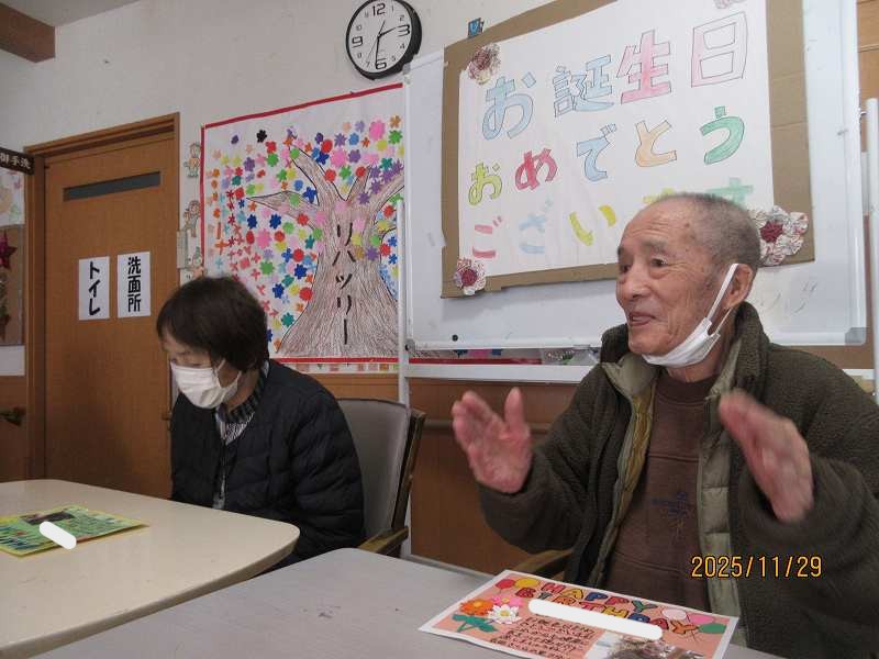 デイサービス 🎂11月合同お誕生日会🎂 お誕生日おめでとうございます。これからもお元気で、笑顔あふれる日々を過ごしてください🎉 公開済み: 2025年11月29日更新: 2025年11月29日作成者: さくらの里カテゴリー: イベント 主役のお2人✨これからもたくさんの思い出一緒に作っていきましょう♪ 利用者様からもお祝いのお言葉をいただきました😊 美味しくみんなでケーキもいただきました🍰 関連記事 🎍新年あけましておめでとうございます🐉2024年も楽しく、穏やかに入居者・利用者の皆様とたくさんの思い出を作っていければと思っております😊 公開済み: 2024年1月1日更新: 2024年2月19日作成者: さくらの里カテゴリー: イベント 吉田北中の生徒様より素敵なクリスマスプレゼントを頂き、みなさんとっても喜んでおられました。レク活動で作った雑巾をお渡しすることができ、ダブルの喜びでした。 公開済み: 2022年12月31日更新: 2023年2月24日作成者: さくらの里カテゴリー: イベント 思川へこいのぼり見学に行ってきました🎏たくさんのこいのぼりが泳いでおり圧巻の風景でした😊 公開済み: 2025年5月14日更新: 2025年5月14日作成者: さくらの里カテゴリー: イベント
