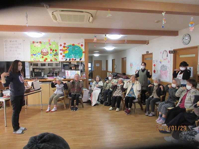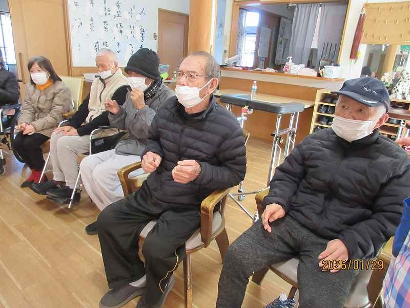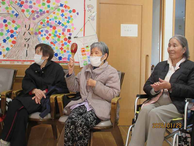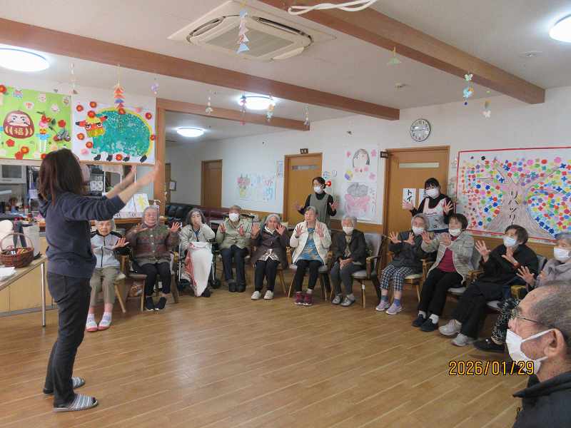 毎月のお楽しみ♪坂中先生による音楽療法✨季節の歌から始まり、馴染みの歌まで皆さんたくさん歌われていました😊