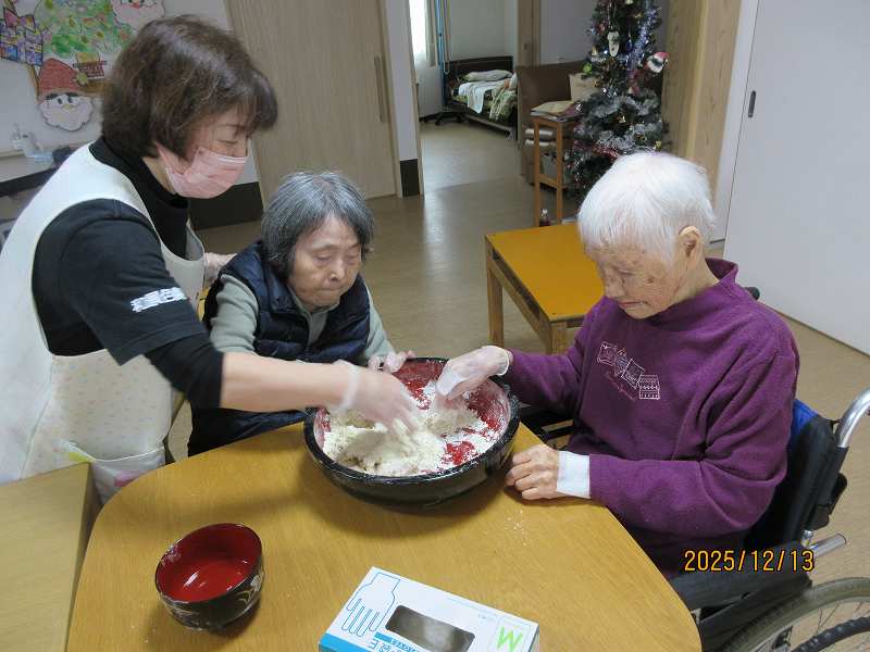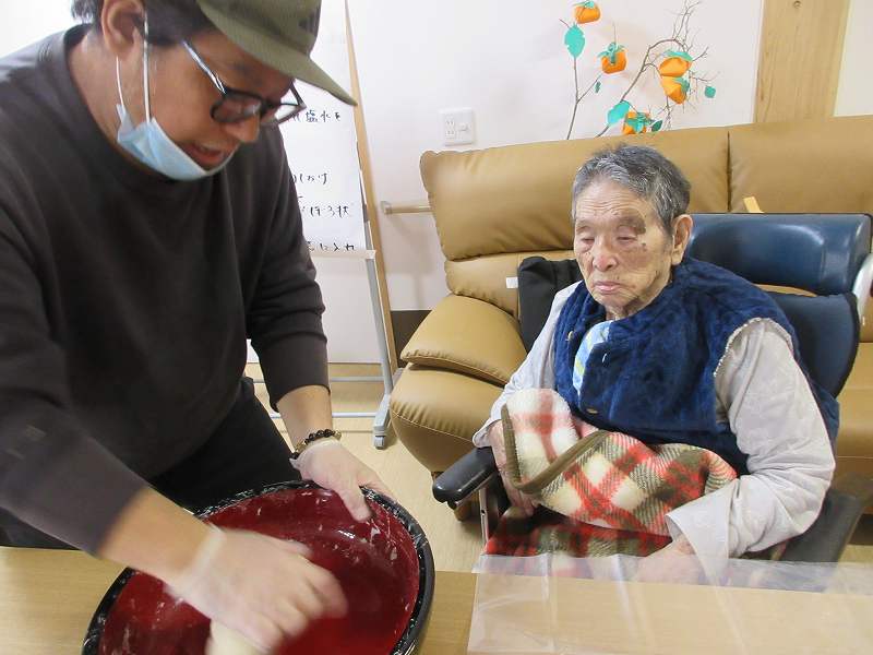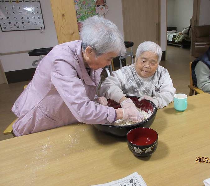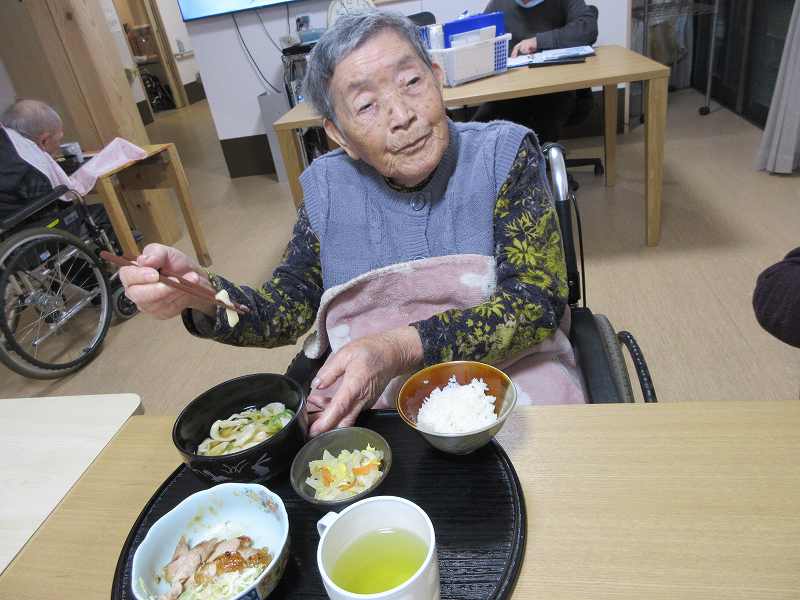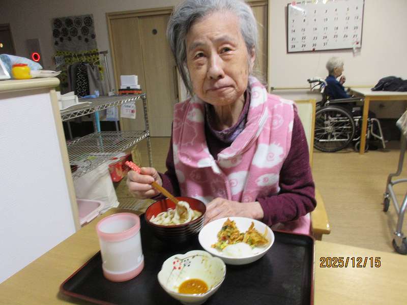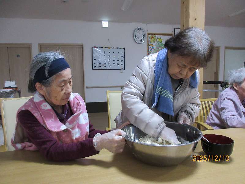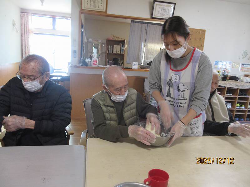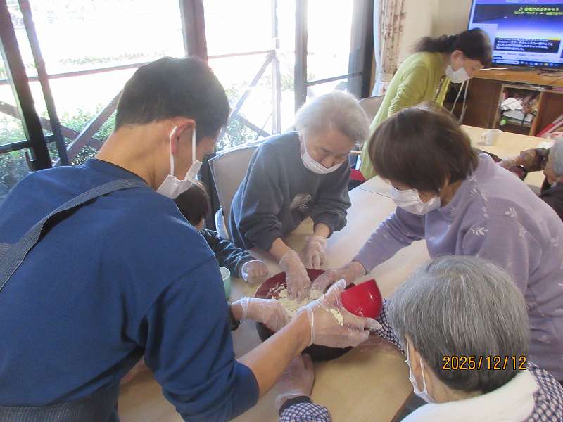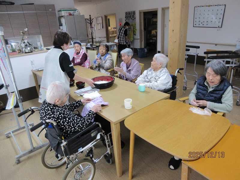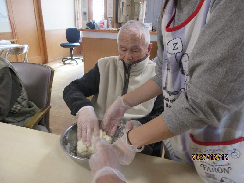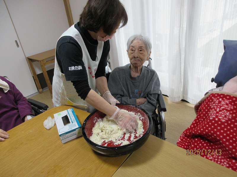 デイサービス・グループホームそれぞれでうどん作りを開催しました♪初めてうどん作りをされる方も多く、楽しまれていました😊