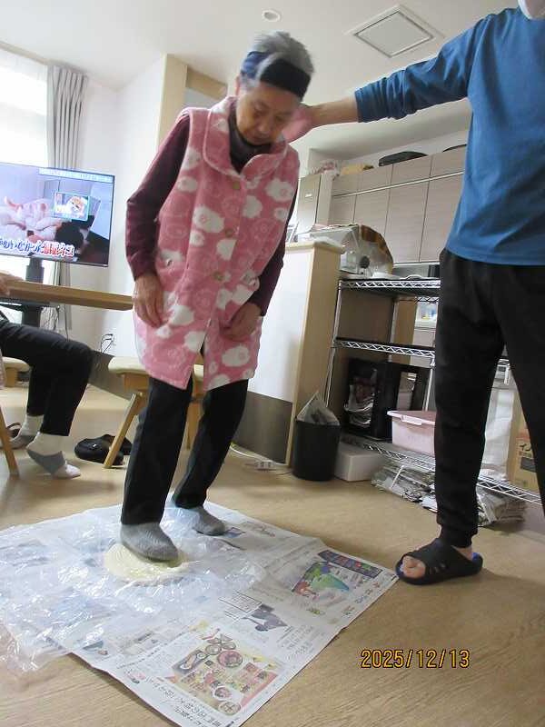 生地を足で踏む初めての感触を楽しんでおられました😊