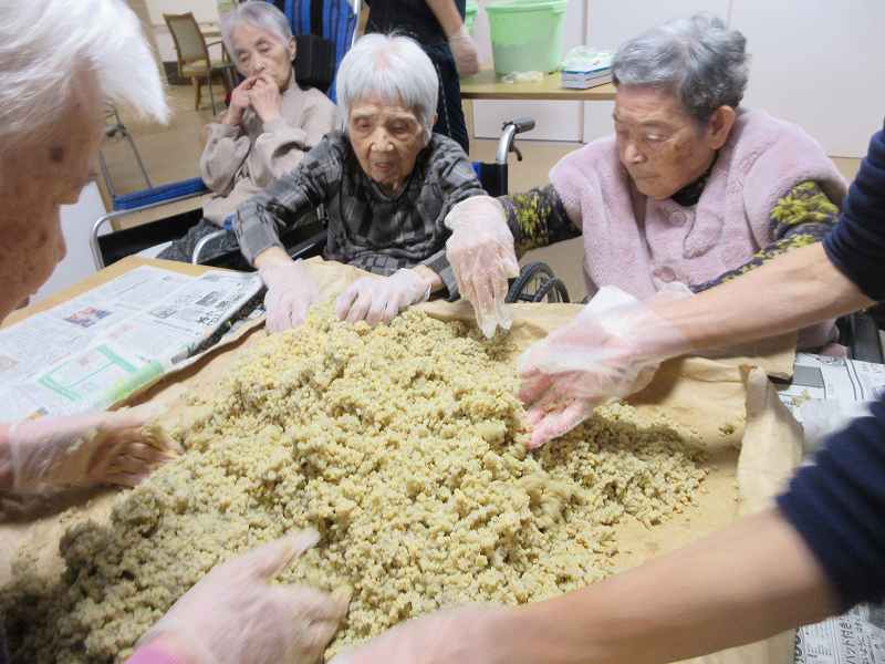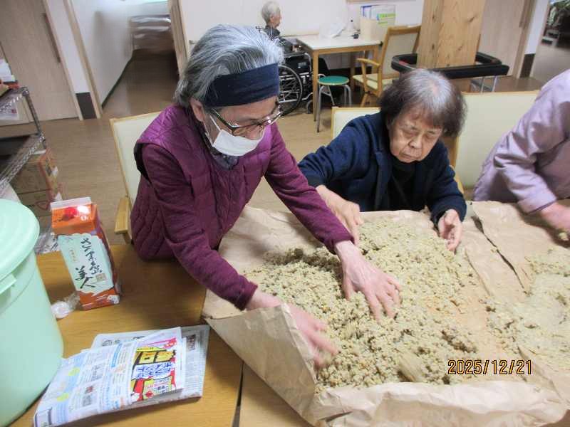 デイサービスでも次の工程へ♪美味しいお味噌が出来上がりますように✨