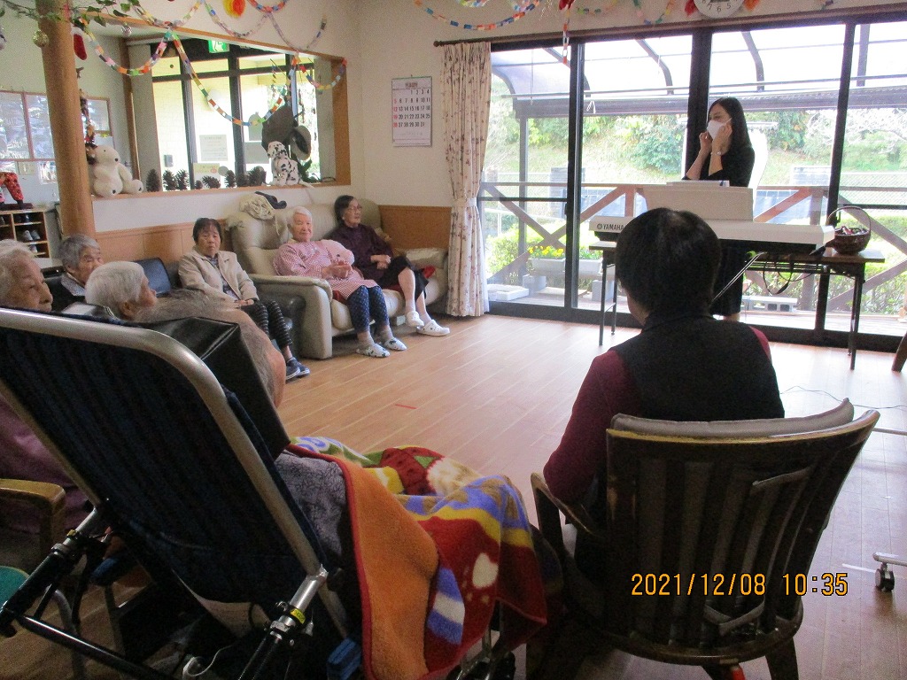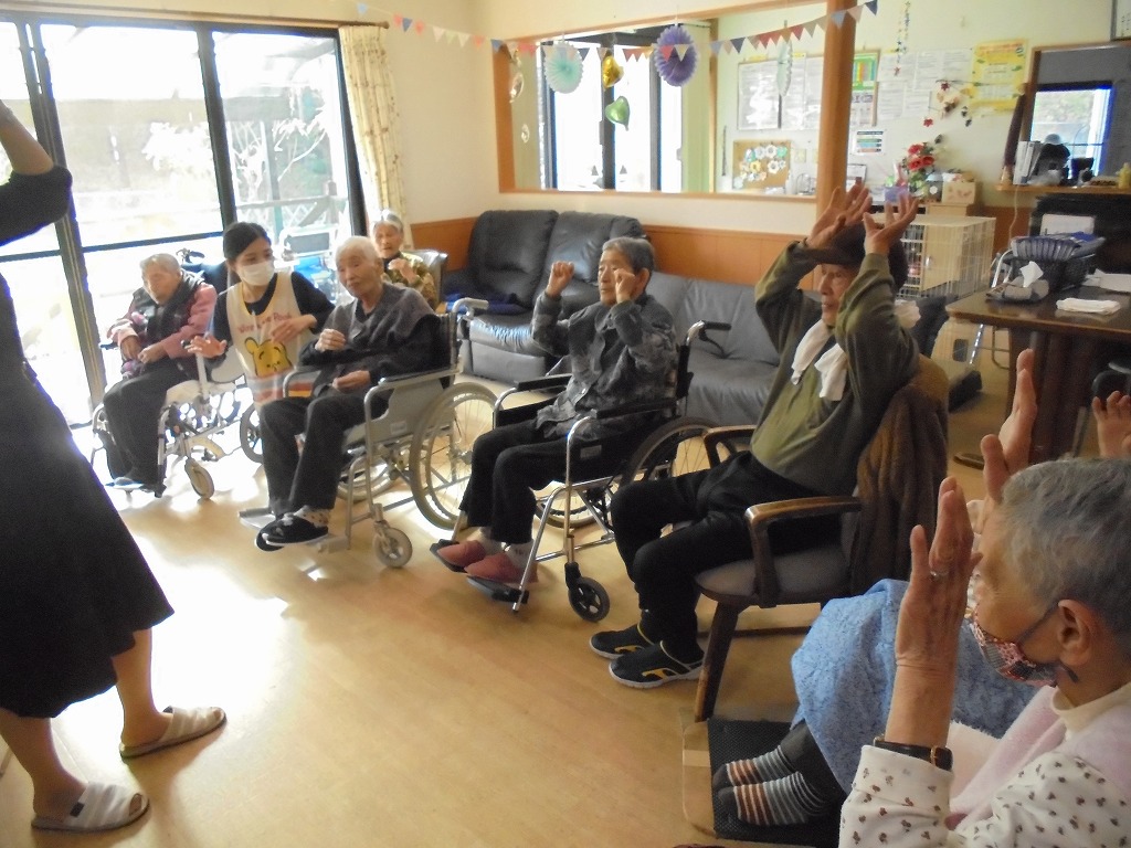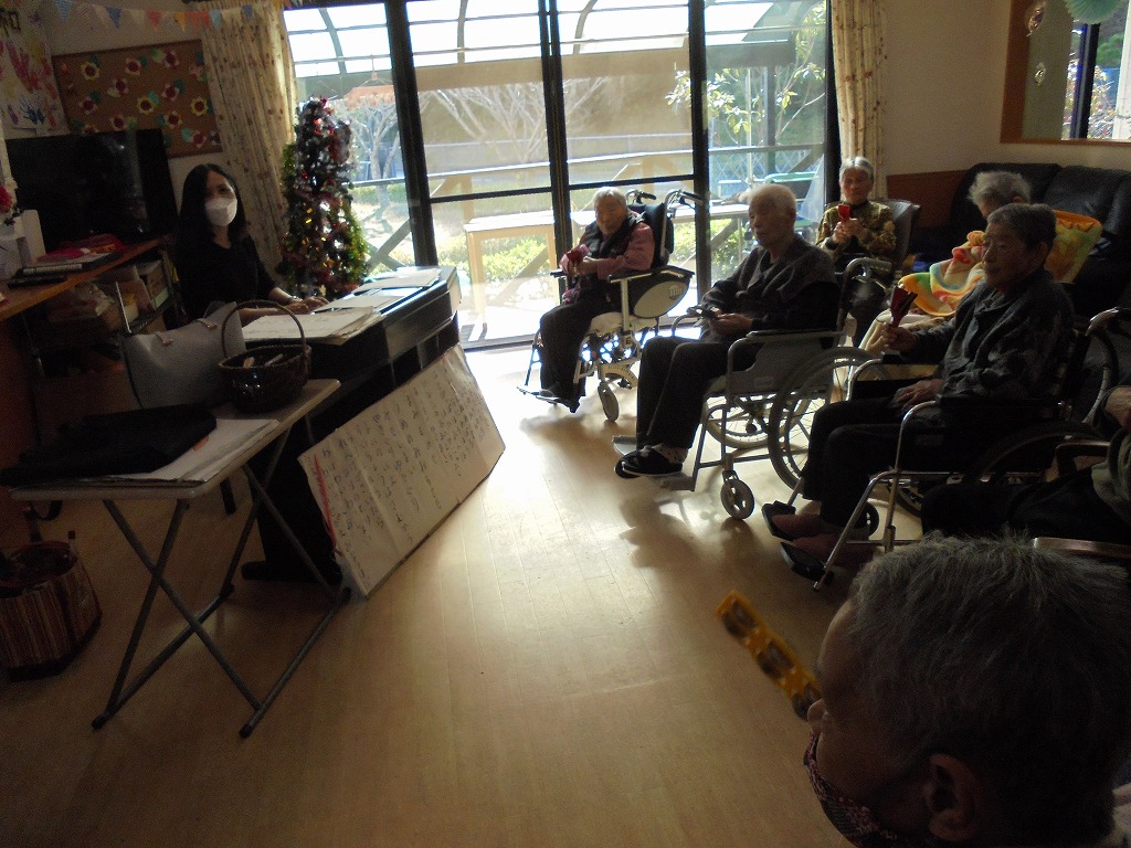 “坂中先生による音楽療法” ご利用者様が毎月とっても楽しみにしている行事です。今日も大きな声で歌ったり、楽器の演奏、リズムを取りながら体を動かしたり楽しい時間を過ごすことができました。 公開済み: 2021年12月20日更新: 2022年6月10日作成者: さくらの里カテゴリー: イベント 関連記事 4/8 芝桜見学へ ご利用者様の笑顔も芝桜に負けずとても素敵でした。 公開済み: 2023年4月30日更新: 2023年5月15日作成者: さくらの里カテゴリー: イベント 2/18雪だるま 公開済み: 2021年2月28日更新: 2022年7月1日作成者: さくらの里カテゴリー: イベント 10月29日 ピクニック第一弾✨ 都市農業センターへピクニックへ行ってきました😊満開のコスモスに『きれいだね~』と感激されていました🎵天気がどうなるかと不安でしたが、天気も味方し皆さんに楽しんでいただくことができました🌼 公開済み: 2024年10月31日更新: 2024年11月2日作成者: さくらの里カテゴリー: イベント