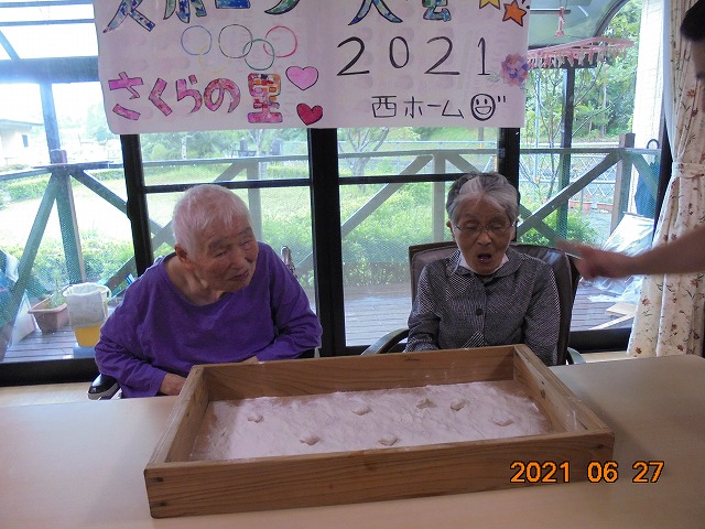 スポーツ大会(里オリンピック) 筋力アップとスマイル筋アップ?になりました。毎日体力づくりを頑張っているので成果が出て本当に良かったです。 公開済み: 2021年6月30日更新: 2022年6月27日作成者: さくらの里カテゴリー: イベント 関連記事 8/18.21誕生会 いつも明るい笑顔に癒されています。これからもお元気にお過ごし下さいませ😊🎂 公開済み: 2023年8月31日更新: 2023年11月4日作成者: さくらの里カテゴリー: イベント 1/20誕生会 公開済み: 2022年1月28日更新: 2022年6月9日作成者: さくらの里カテゴリー: イベント 9月1日~9月10日 日常風景😊 9月に入り朝・晩は涼しく過ごしやすい日が増えてきたように感じます😄日中はまだまだ暑い日が続きますので体調に十分注意してまいります!!! 公開済み: 2024年9月10日更新: 2024年9月10日作成者: さくらの里カテゴリー: イベント