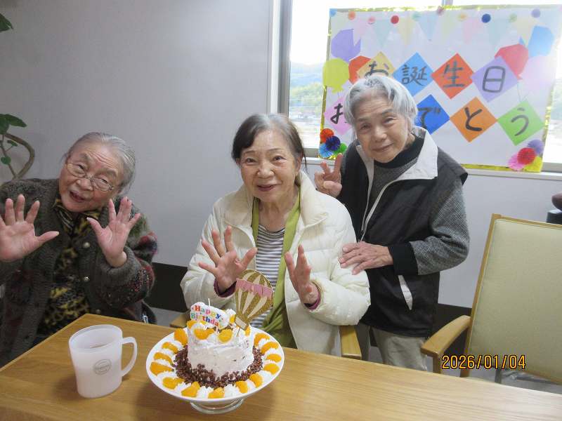 1月4日 🎂お誕生日おめでとうございます✨これからもお元気で笑顔あふれる楽しい日々を過ごしてください🎉 公開済み: 2026年1月4日更新: 2026年1月4日作成者: さくらの里カテゴリー: イベント みんなでお祝い㊗️バースデイケーキも喜んで頂けました✨ ケーキ入刀🎂 お祝い御膳もみんなで美味しくいただきました😊 関連記事 1/2~8初詣 一人ひとり願いを込めてお祈りしました。初詣と初買い物?も・・・😊 今年も助け合い・支えあい・寄り添いながら過ごしてまいりたいと思います。😊😊😊 公開済み: 2023年1月31日更新: 2023年3月10日作成者: さくらの里カテゴリー: イベント 3/8お茶タイムの後、散策する方、グランドゴルフ、畑作業と皆さん積極的に活動されていました。 公開済み: 2021年3月22日更新: 2022年7月1日作成者: さくらの里カテゴリー: イベント 蒲生公園へ 心地いい風に当たりながら会話も弾み、ご飯もとっても美味しいでした。 公開済み: 2022年4月30日更新: 2022年5月28日作成者: さくらの里カテゴリー: イベント