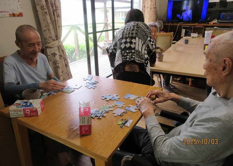 デイサービス🌸日常風景 それぞれパズル・創作活動・編み物・数字並べなどに励んでおられました😊
