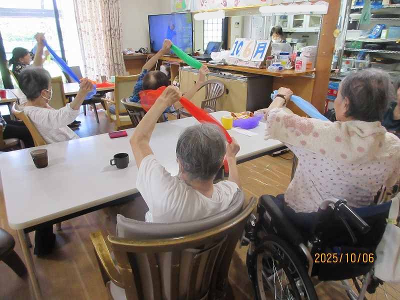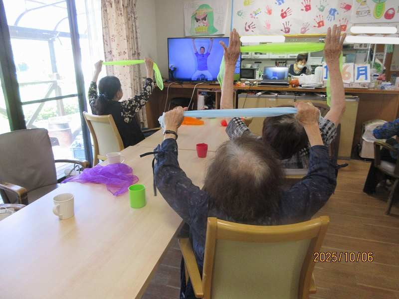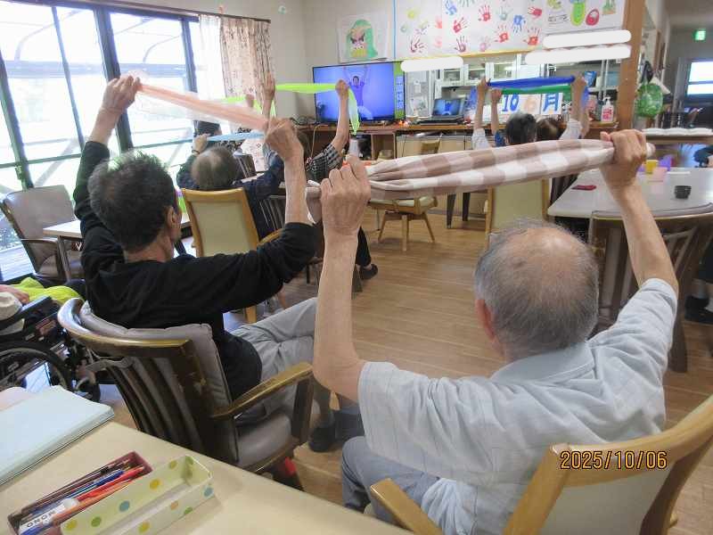 デイサービス🌸日常風景 タオルやスカーフを使って体操♪