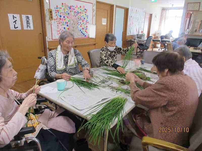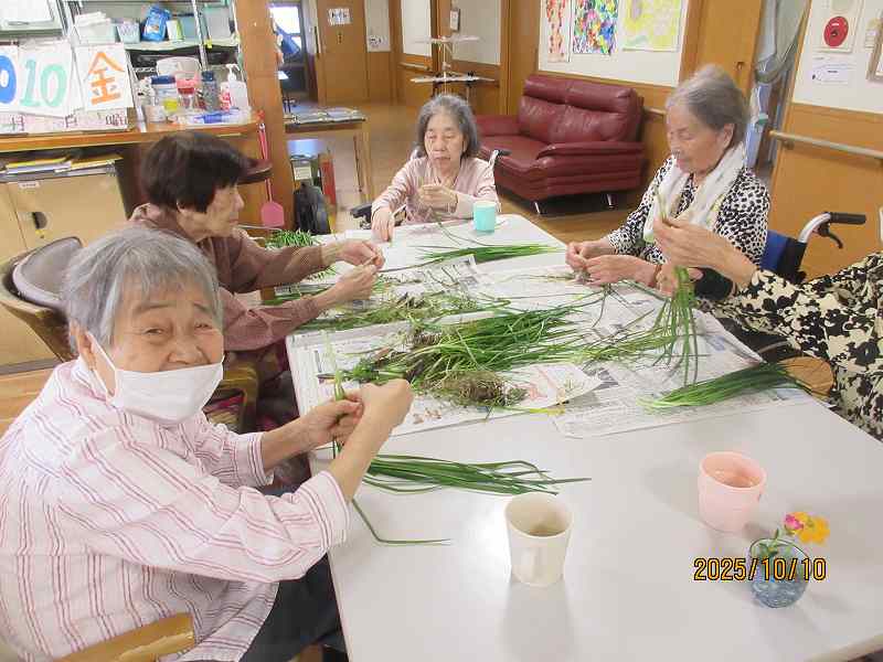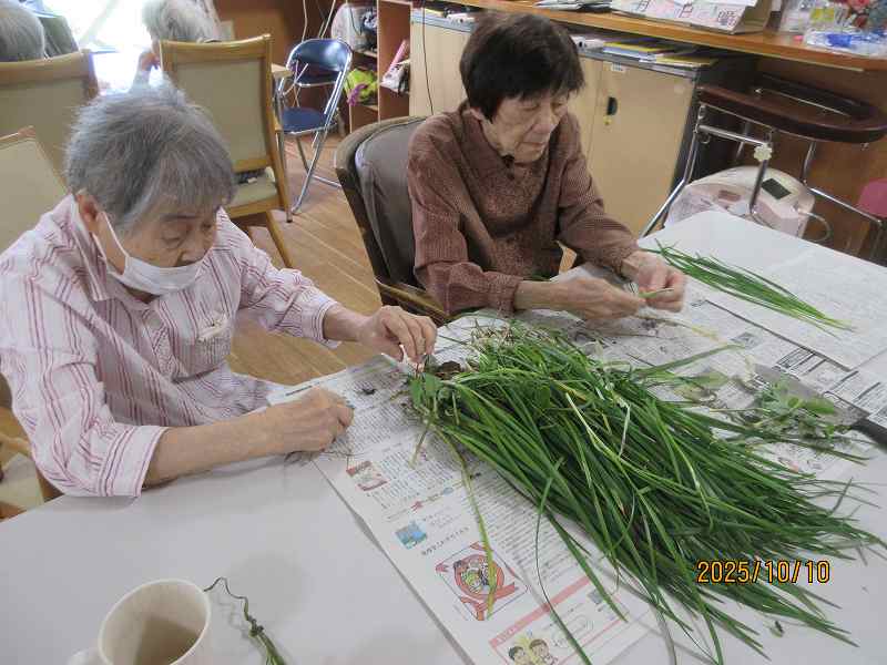 デイサービス🌸日常風景 畑で採れたニラを綺麗に(^^♪
