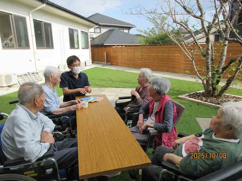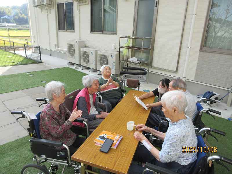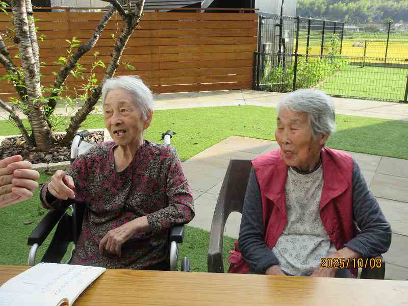 グループホーム🌸日常風景 外気浴🌞談笑されたり、歌をうたわれたり穏やかな時間を過ごされていました😊