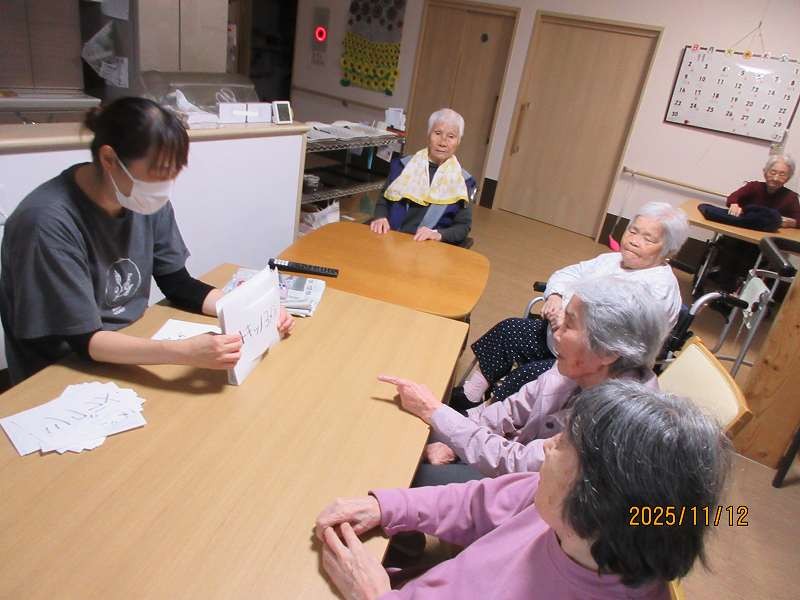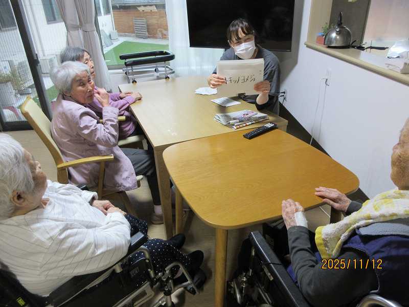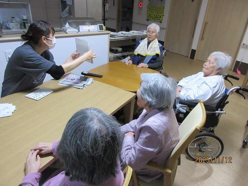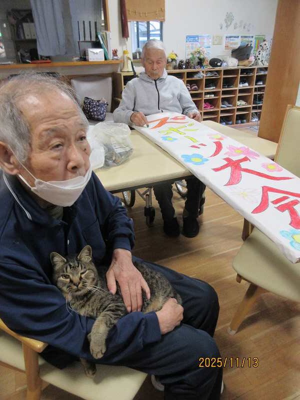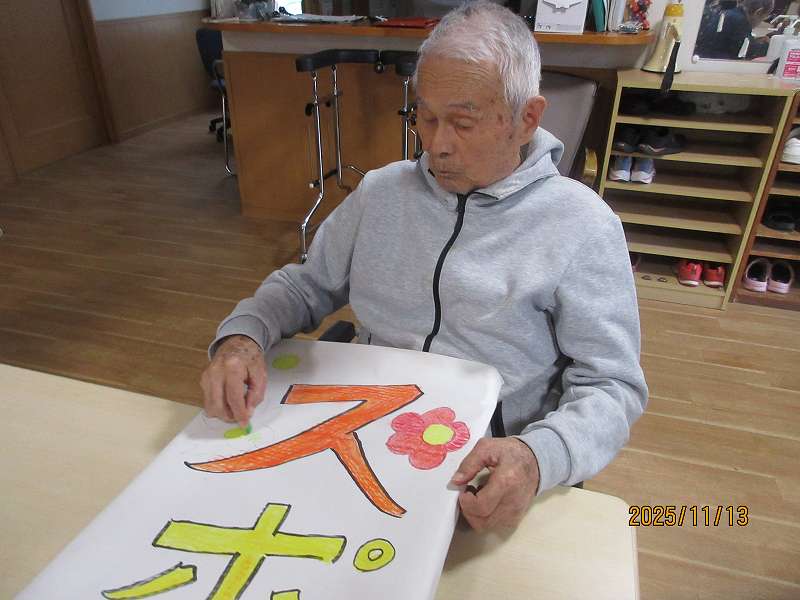11月11日~ 日常風景😊 公開済み: 2025年11月14日更新: 2025年11月14日作成者: さくらの里カテゴリー: イベント グループホーム🌸日常風景 折り紙で作った柿を本物の枝に飾り付けてみました♪本当の柿みたいです🍅🍅🍅 脳トレ✨鹿児島弁問題♪地域によっては言い方が違ったりする方言もありました!! デイサービス🌸日常風景 ネコちゃんの定位置になってきつつあります🐱 関連記事 🎉1月20日 お誕生日おめでとうございます🎂これからも楽しく穏やかに元気に過ごして下さいね✨ 公開済み: 2024年1月20日更新: 2024年3月8日作成者: さくらの里カテゴリー: イベント 10月26日 吉田秋祭りに行ってきました😊 公開済み: 2024年10月28日更新: 2024年10月28日作成者: さくらの里カテゴリー: イベント 9/21~26日常風景 公開済み: 2023年9月30日更新: 2023年11月6日作成者: さくらの里カテゴリー: イベント