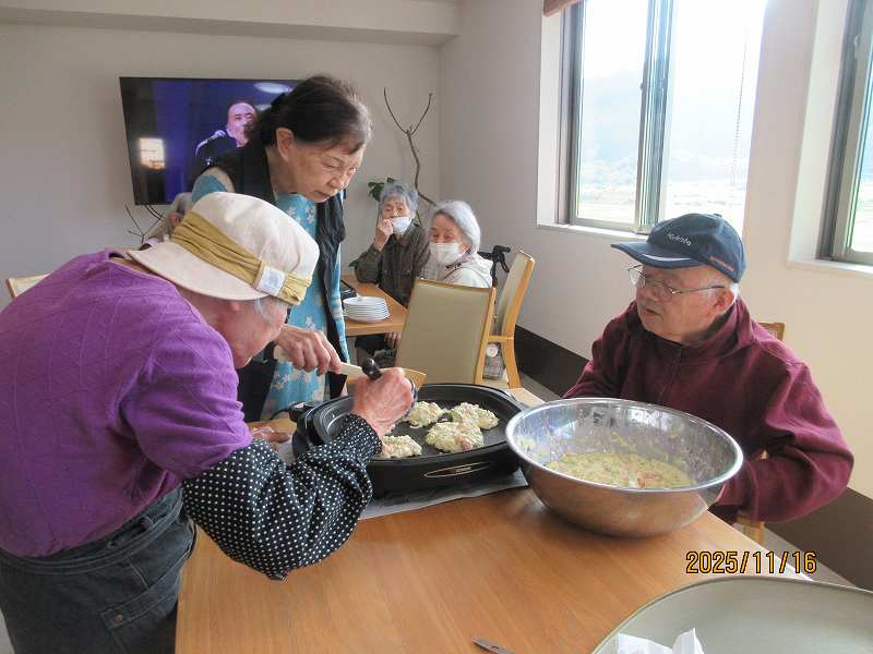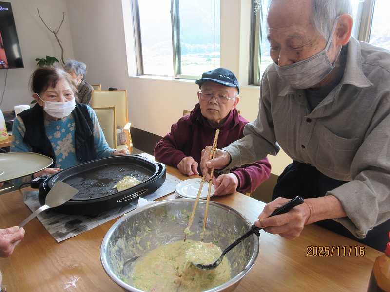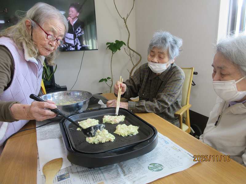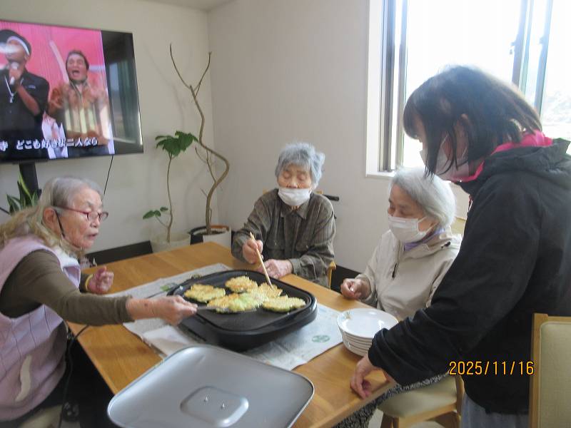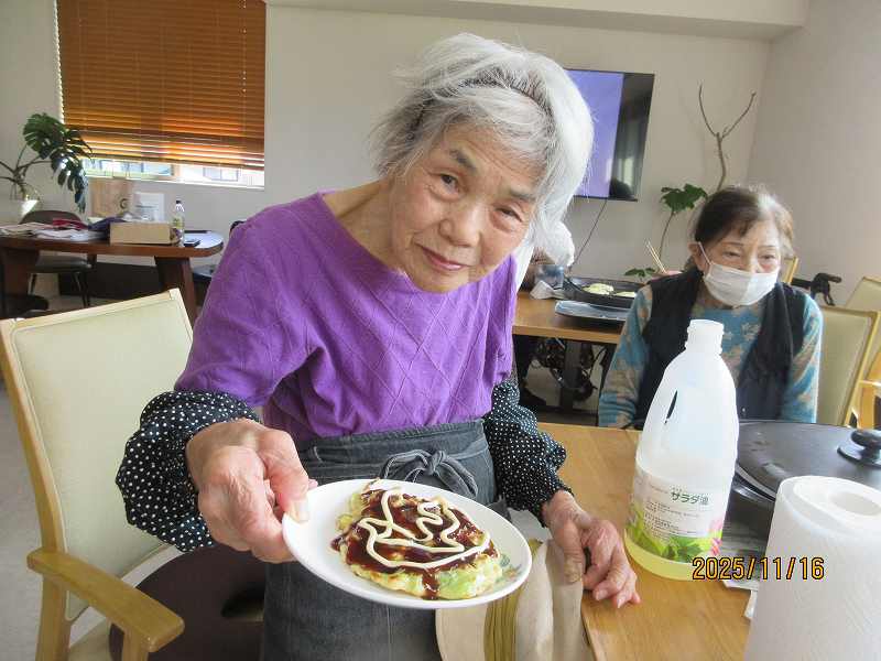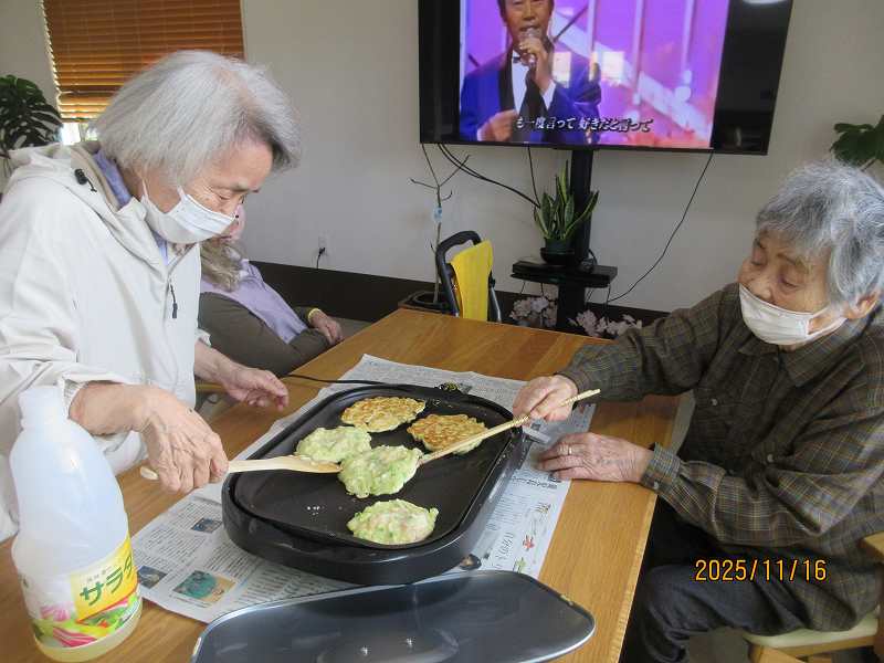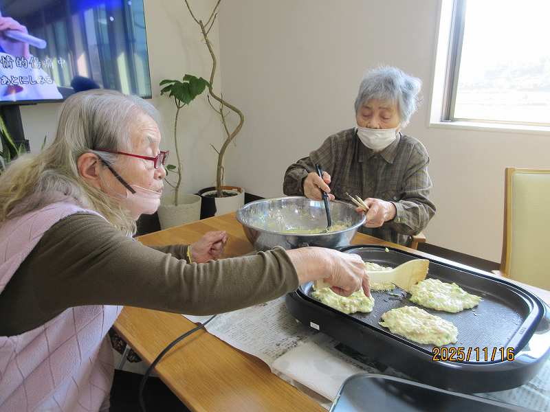 有料老人ホーム🌸日常風景 ふんわりお好み焼き作り♪