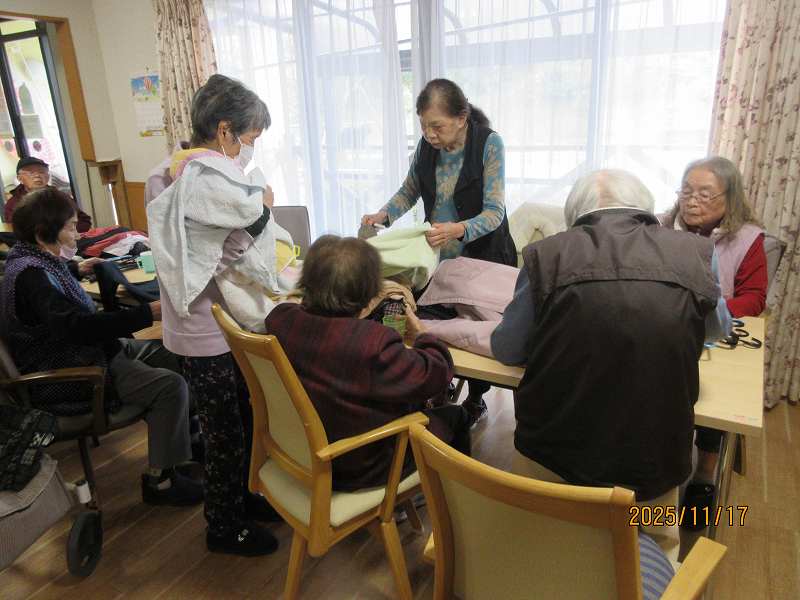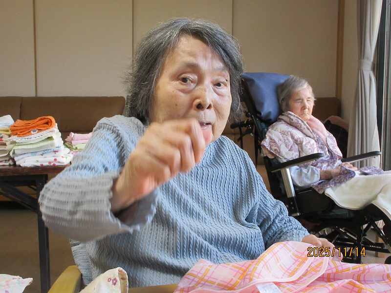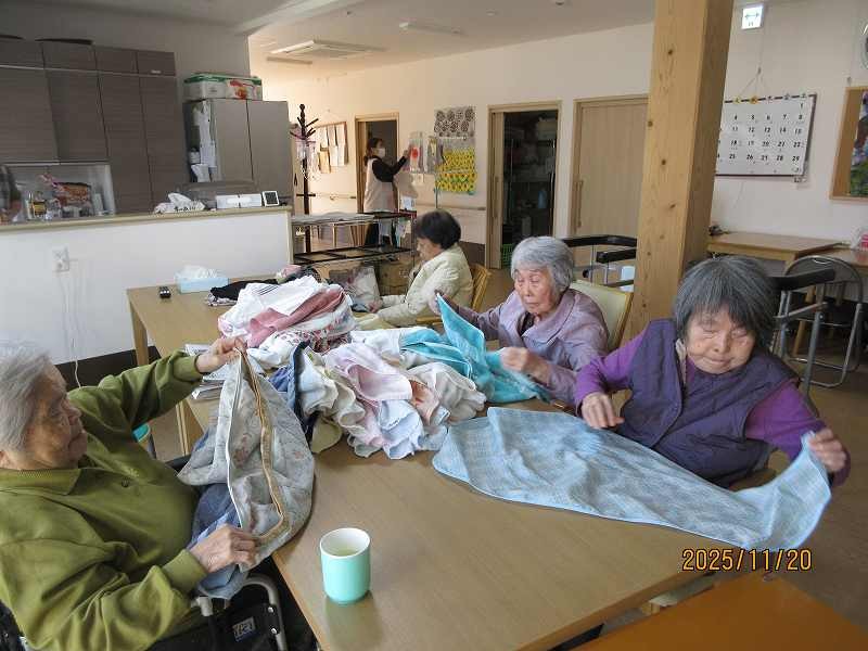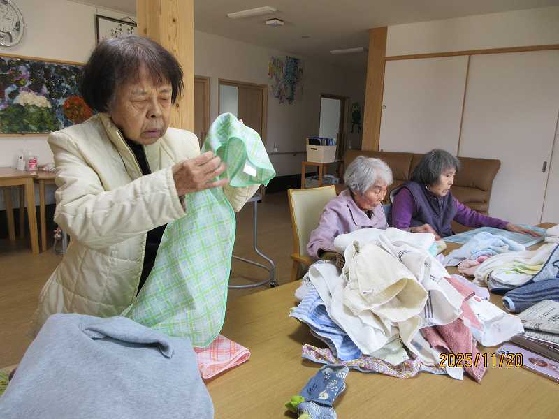 協力して洗濯物たたみ♪「私も手伝うよ~」とどっさり洗濯物を抱えておられました😊