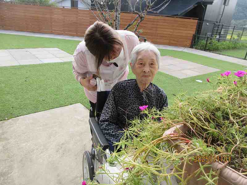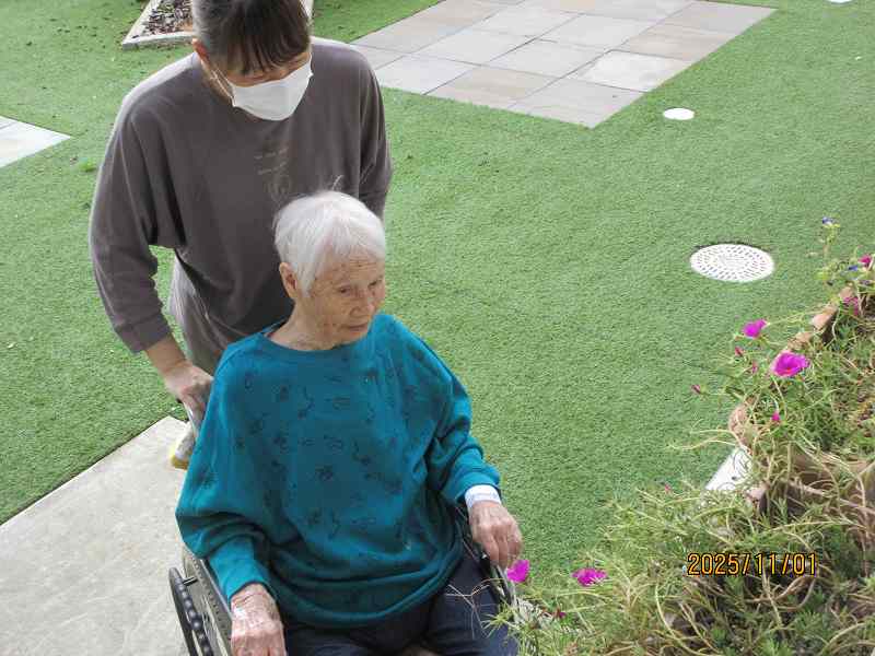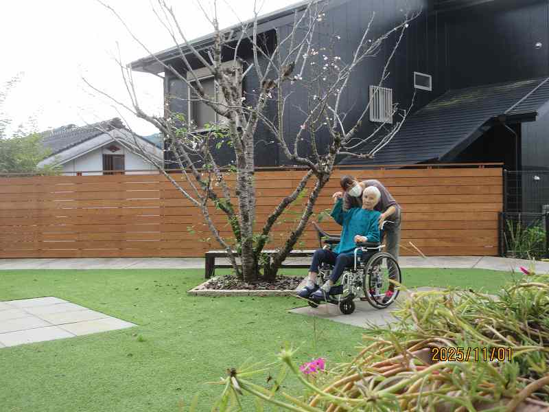 中庭をお散歩♪「気持ちがよか」とゆっくりと外を回られました😊