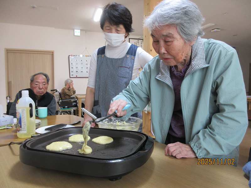 東ホームではホットケーキ作り🥞