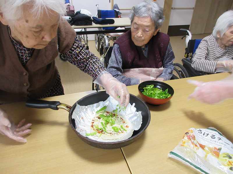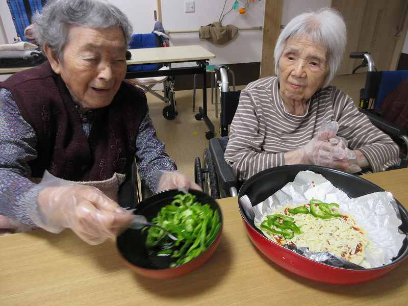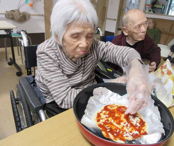 グループホーム🌸日常風景 久しぶりのピザ作り🍕冷蔵庫にあった食材で作ってみました♪