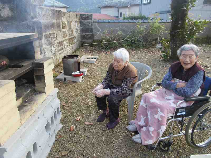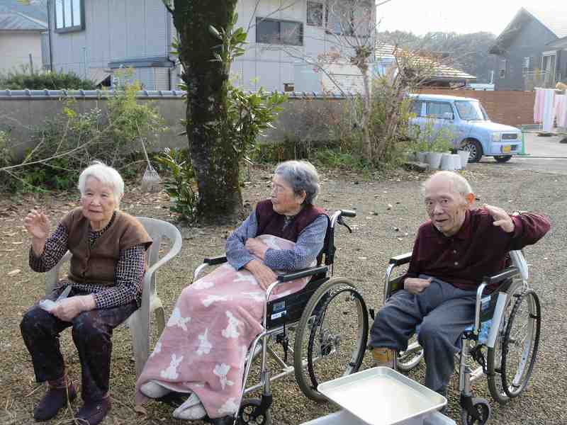グループホーム🌸日常風景 中庭でティータイム🍵日向ぼっこ気持ちがいいですね~😊