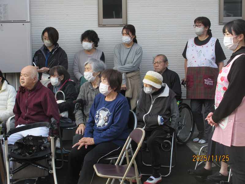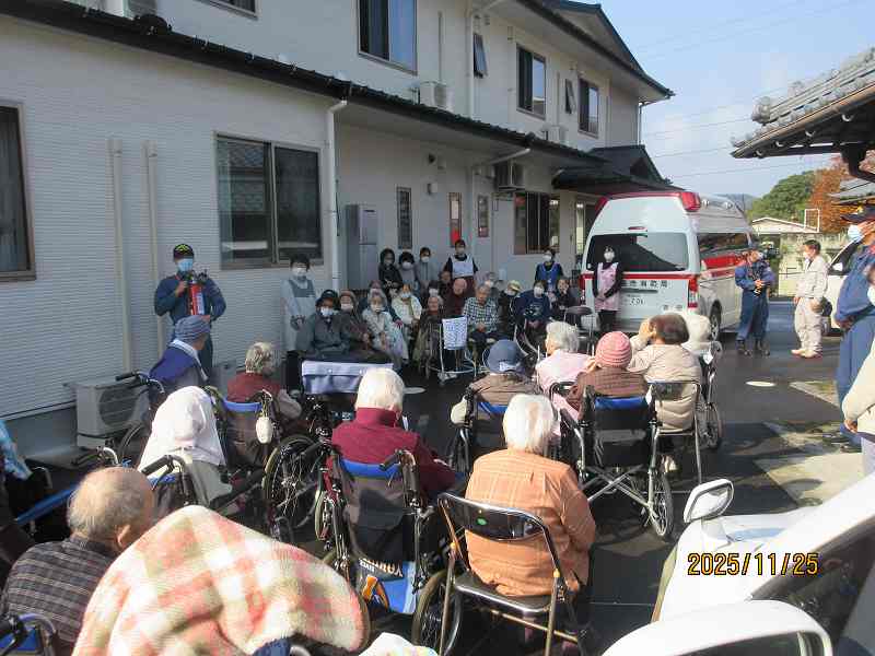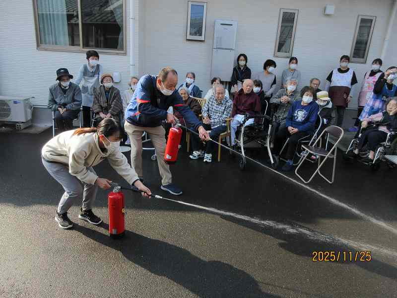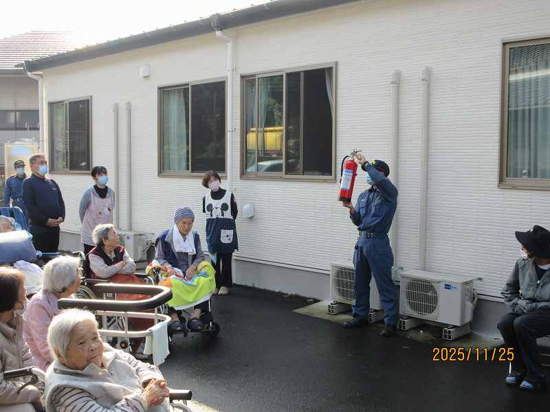 11月25日 夜間の火災を想定した防災訓練を行いました。 公開済み: 2025年11月25日更新: 2025年11月27日作成者: さくらの里カテゴリー: イベント 年2回消防立ち合いの訓練に加え、定期的に自主訓練を実施しています!! 消火器のの説明を受け消火器訓練も行いました。 火災を起こさないことが一番ですが、今後も水害・地震・火災さまざまな想定をし訓練に取り組んでいきたいと思います。 関連記事 12/1~10日常風景 公開済み: 2021年12月20日更新: 2022年6月10日作成者: さくらの里カテゴリー: イベント 5/25、31ホーム春祭り モグラたたき、手品、宝探しなど大盛り上がりでした。「あら、あら・・・」「こっち、こっち」「あったぁー」と声が飛び交っていました。ホール内に笑い声があふれていました。 公開済み: 2023年5月31日更新: 2023年8月3日作成者: さくらの里カテゴリー: イベント デイサービース🎵音楽療法が開催されました🎹 公開済み: 2025年10月18日更新: 2025年10月18日作成者: さくらの里カテゴリー: イベント