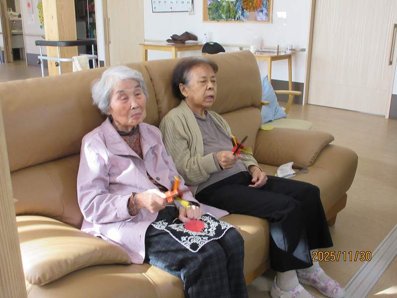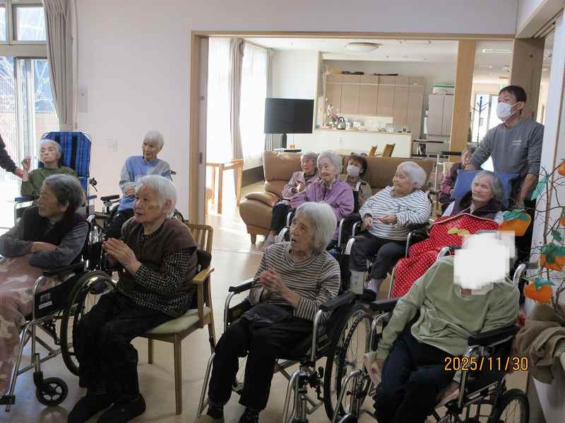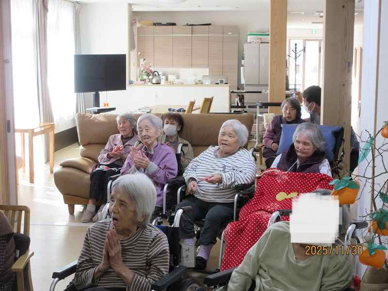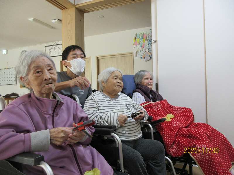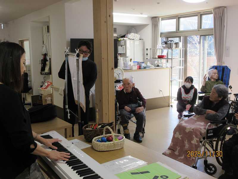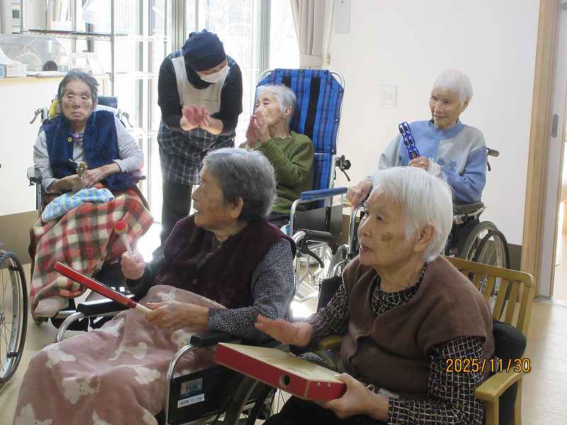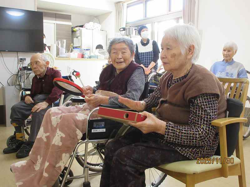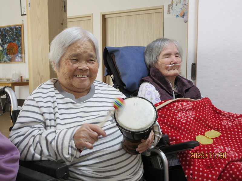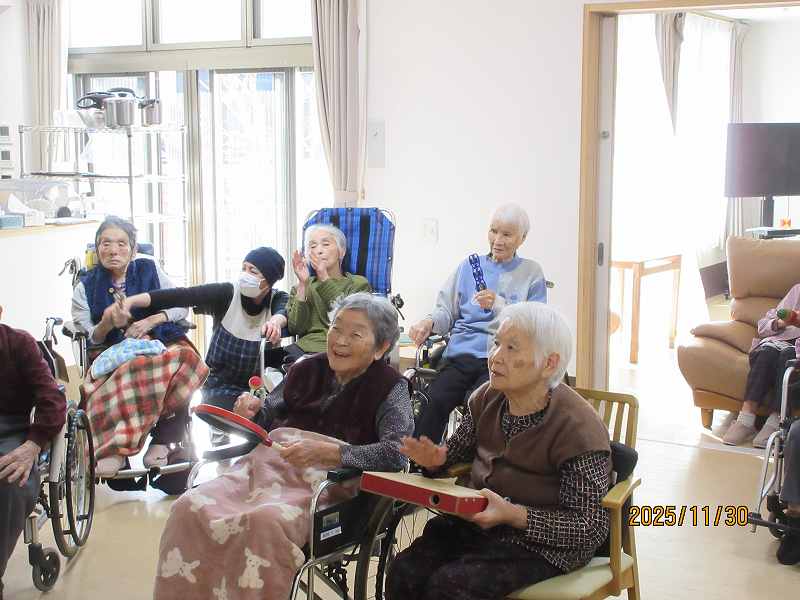 11月30日 🎹グループホームにて音楽療法が開催されました🎶 公開済み: 2025年11月30日更新: 2025年12月5日作成者: さくらの里カテゴリー: イベント 歌って♪楽器を演奏して♪リズムにのって体を動かして♪みなさん楽しく参加されていました😊 いつの間にやら手と手を合わせておられました😊微笑ましい光景に思わず写真を撮ってしまいました📷 関連記事 10/1~15日常風景 公開済み: 2022年10月15日更新: 2022年10月21日作成者: さくらの里カテゴリー: イベント 11/1 デイサービス音楽療法🎵 今回も心地よいピアノの音色に癒されました🎹利用者の皆様も大きく口を開け歌われていました😊 公開済み: 2024年11月5日更新: 2024年11月13日作成者: さくらの里カテゴリー: イベント 外食第2弾✨イオンへお出掛けしてきました🚙 公開済み: 2024年12月19日更新: 2024年12月19日作成者: さくらの里カテゴリー: イベント
