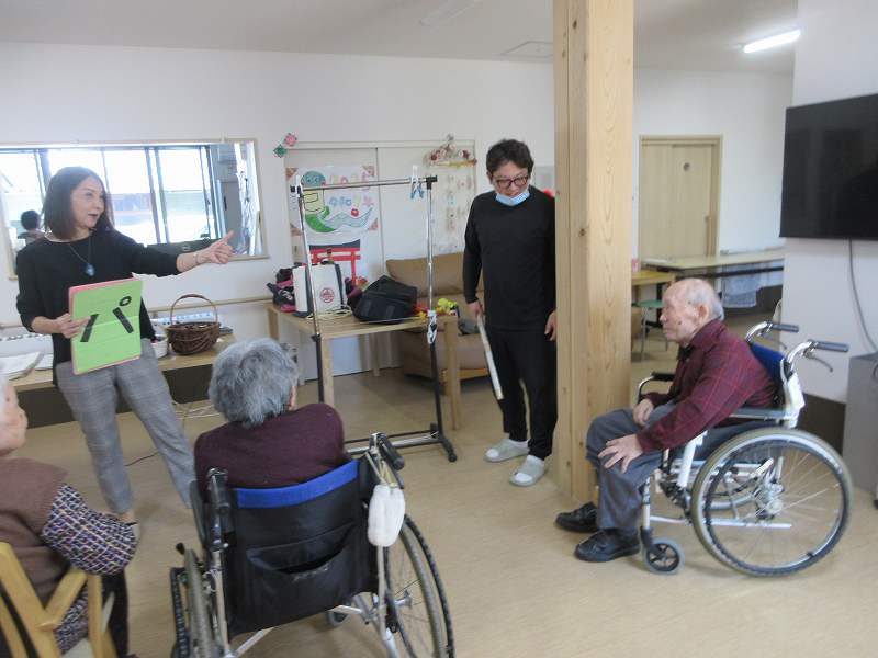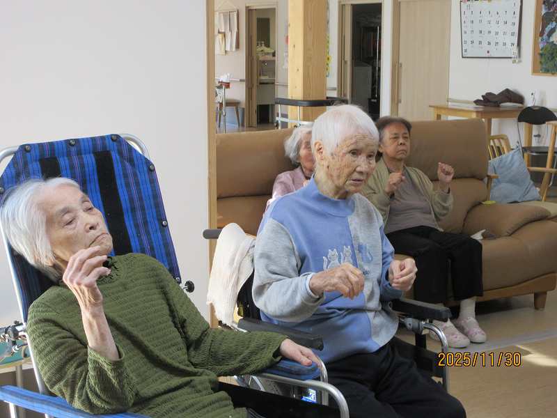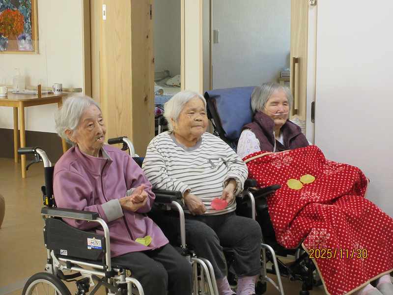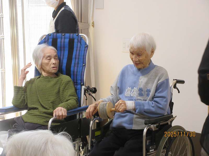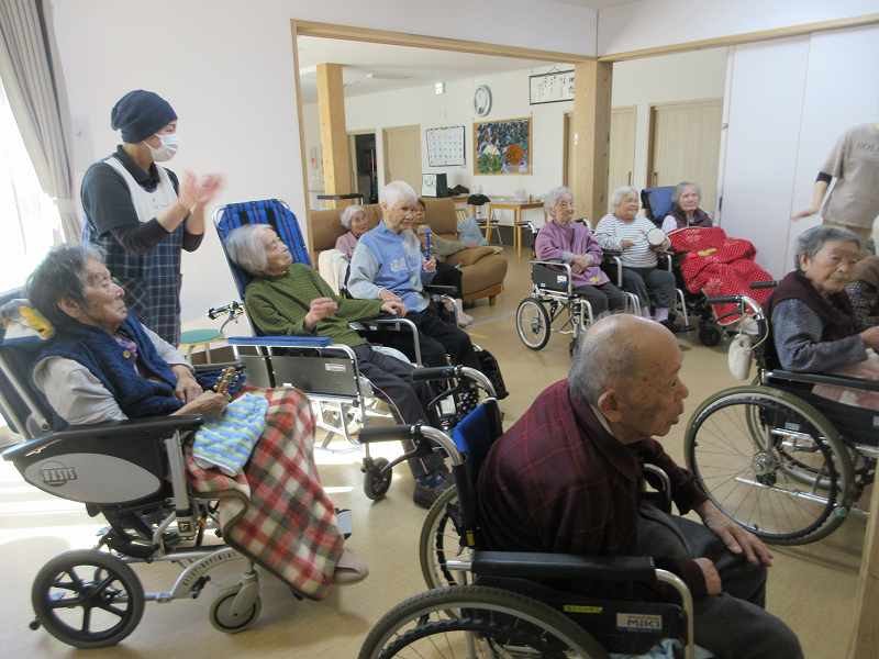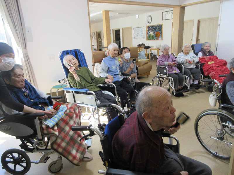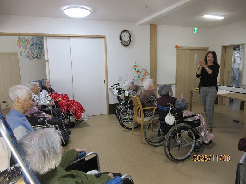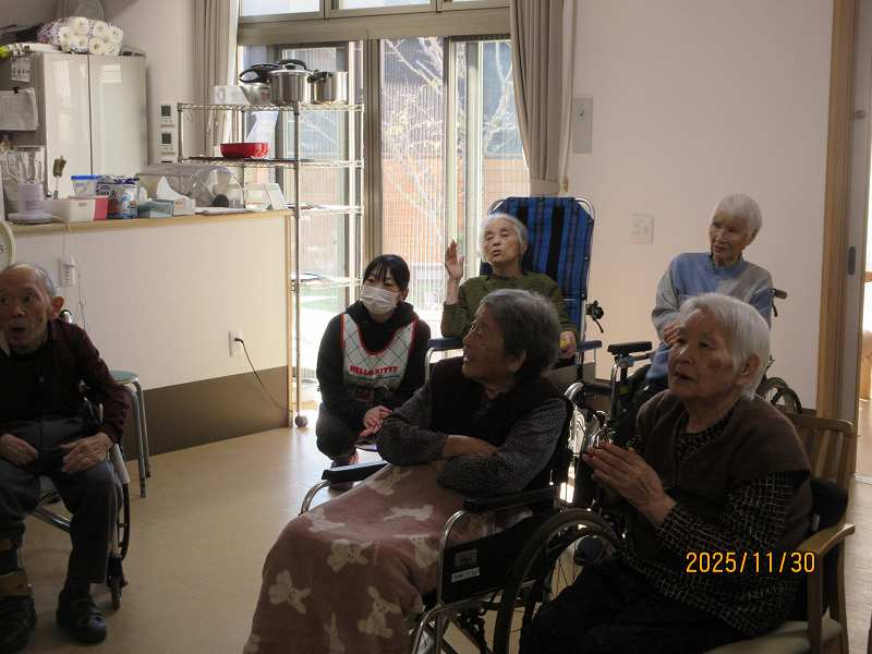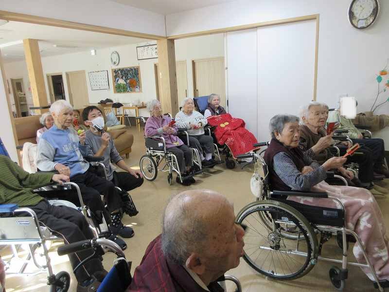 11月30日 🎹グループホームにて音楽療法が開催されました🎶 公開済み: 2025年11月30日更新: 2025年12月5日作成者: さくらの里カテゴリー: イベント 歌って♪楽器を演奏して♪リズムにのって体を動かして♪みなさん楽しく参加されていました😊 いつの間にやら手と手を合わせておられました😊微笑ましい光景に思わず写真を撮ってしまいました📷 関連記事 10/1~15日常風景 公開済み: 2022年10月15日更新: 2022年10月21日作成者: さくらの里カテゴリー: イベント 11/1 デイサービス音楽療法🎵 今回も心地よいピアノの音色に癒されました🎹利用者の皆様も大きく口を開け歌われていました😊 公開済み: 2024年11月5日更新: 2024年11月13日作成者: さくらの里カテゴリー: イベント 外食第2弾✨イオンへお出掛けしてきました🚙 公開済み: 2024年12月19日更新: 2024年12月19日作成者: さくらの里カテゴリー: イベント