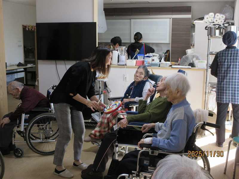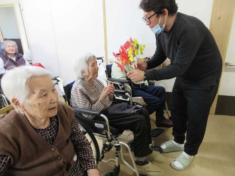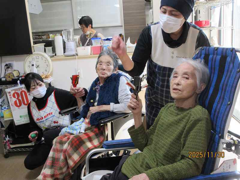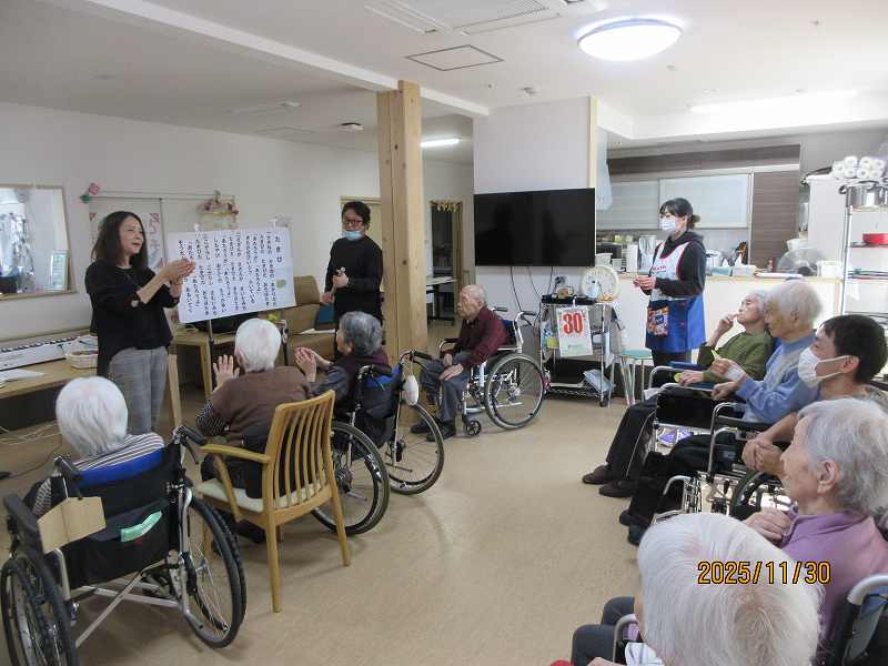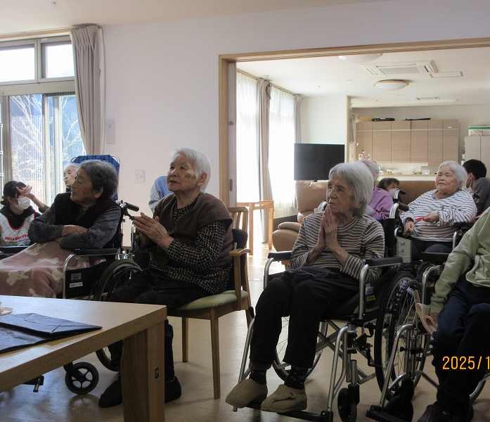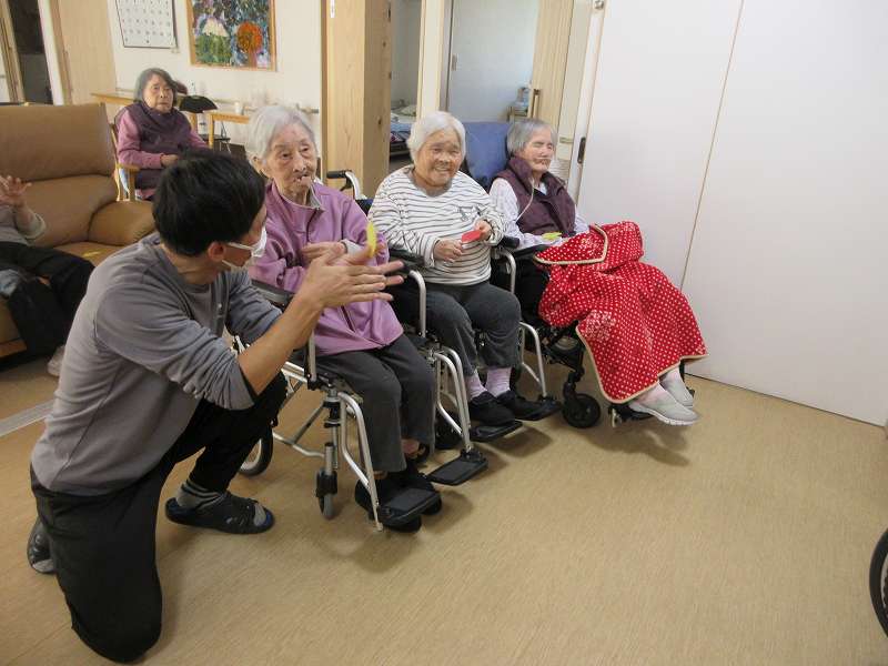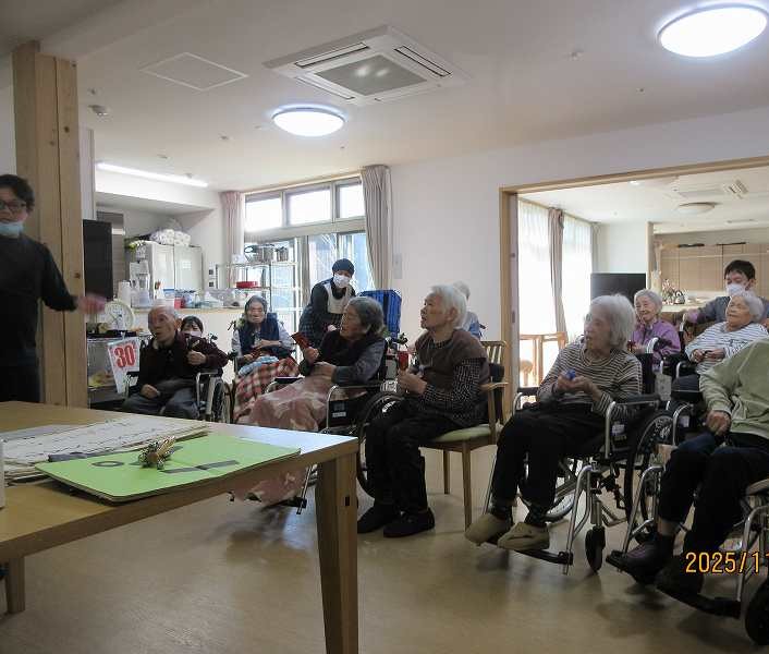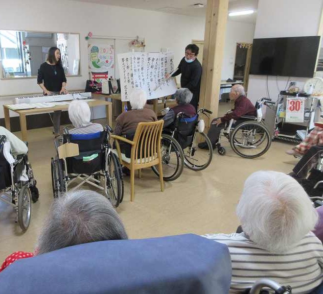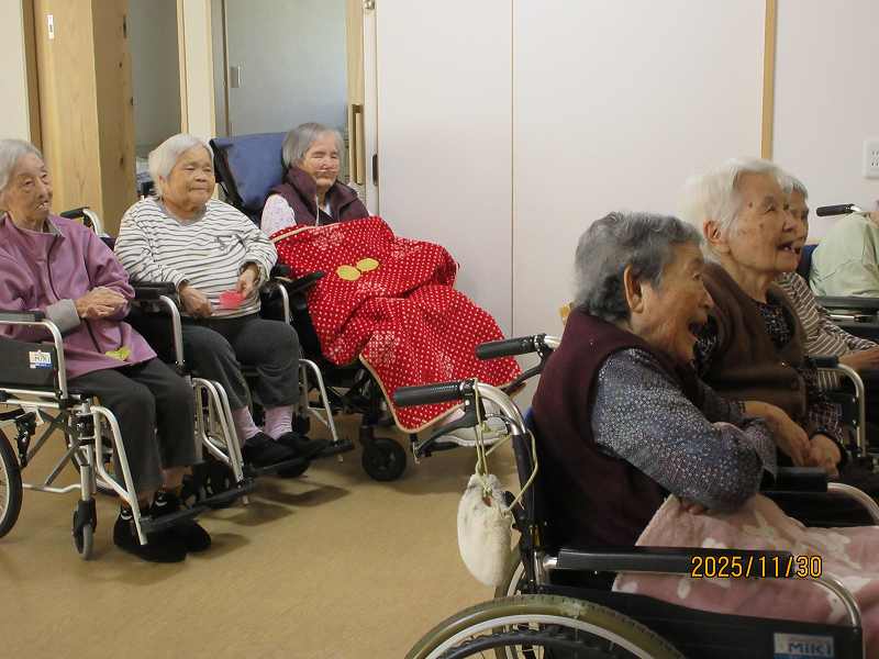 11月30日 🎹グループホームにて音楽療法が開催されました🎶 公開済み: 2025年11月30日更新: 2025年12月5日作成者: さくらの里カテゴリー: イベント 歌って♪楽器を演奏して♪リズムにのって体を動かして♪みなさん楽しく参加されていました😊 いつの間にやら手と手を合わせておられました😊微笑ましい光景に思わず写真を撮ってしまいました📷 関連記事 10/1~15日常風景 公開済み: 2022年10月15日更新: 2022年10月21日作成者: さくらの里カテゴリー: イベント 11/1 デイサービス音楽療法🎵 今回も心地よいピアノの音色に癒されました🎹利用者の皆様も大きく口を開け歌われていました😊 公開済み: 2024年11月5日更新: 2024年11月13日作成者: さくらの里カテゴリー: イベント 外食第2弾✨イオンへお出掛けしてきました🚙 公開済み: 2024年12月19日更新: 2024年12月19日作成者: さくらの里カテゴリー: イベント