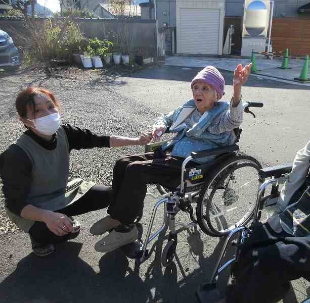 グループホーム日常風景😊季節外れの暖かい気候♪気持ちの良いお天気の下で外気浴🎵