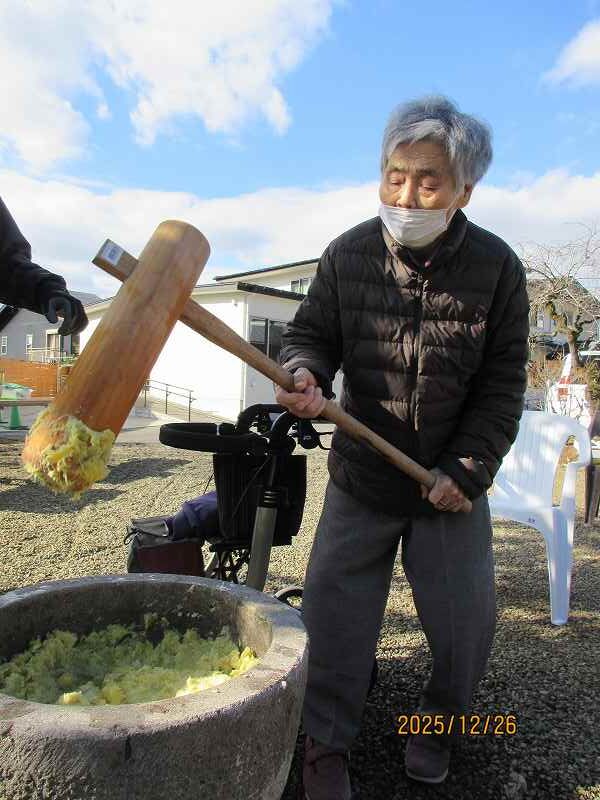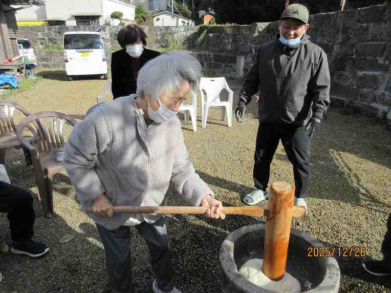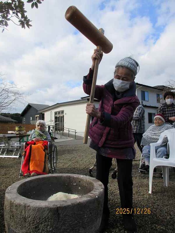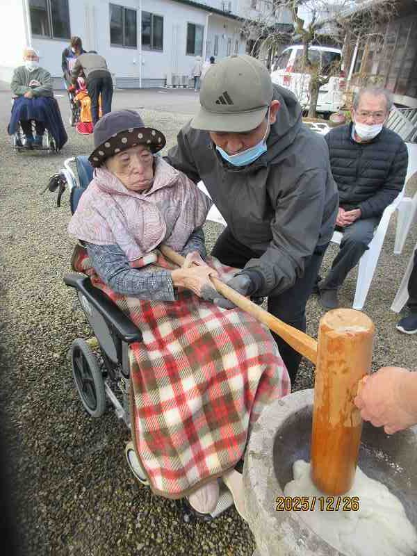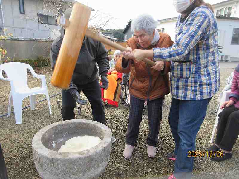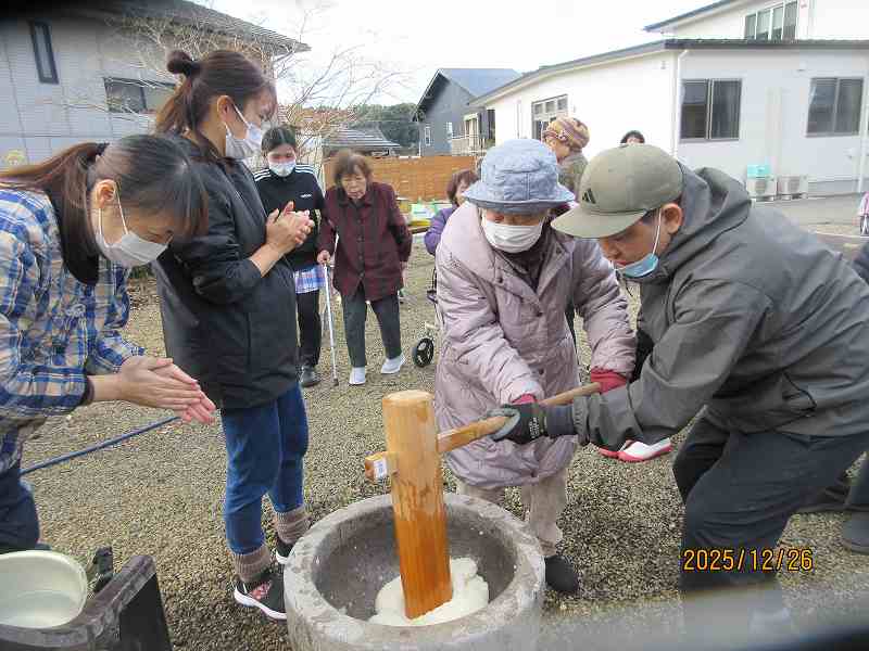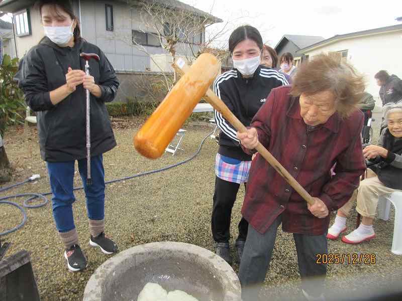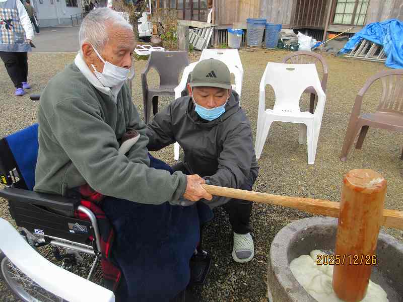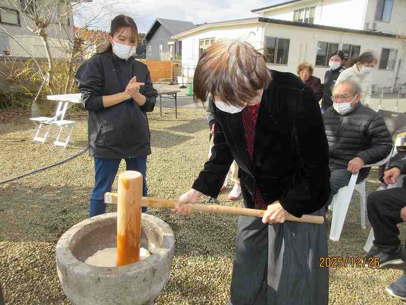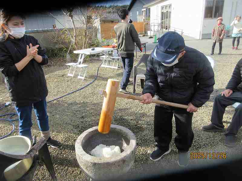 「よいしょ~!よいしょ~!」の掛け声のとともに、交代で餅をついていただきました♪