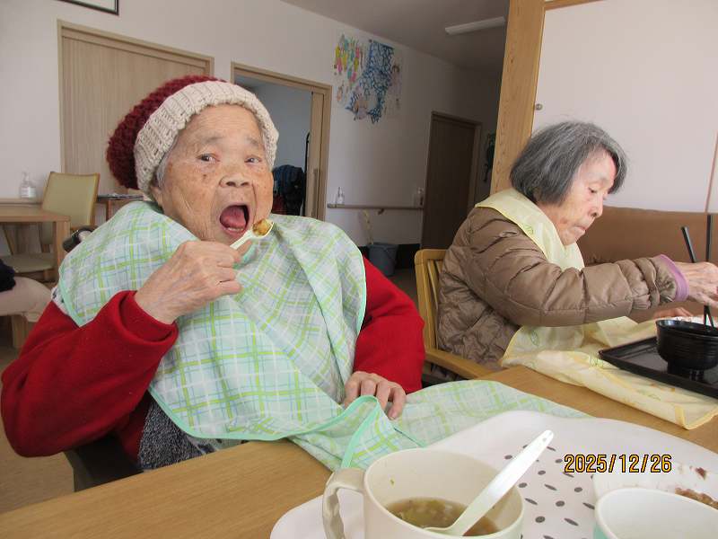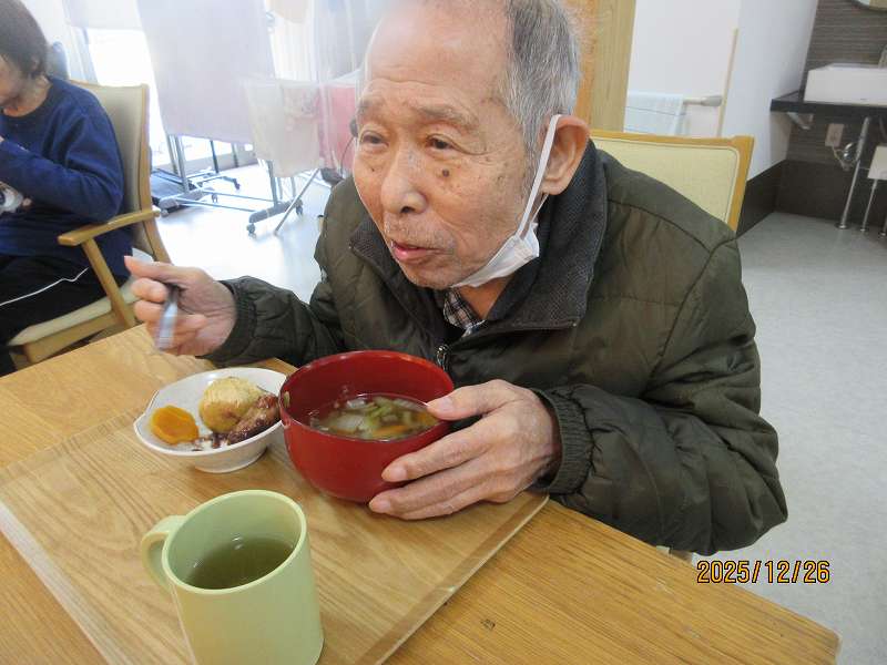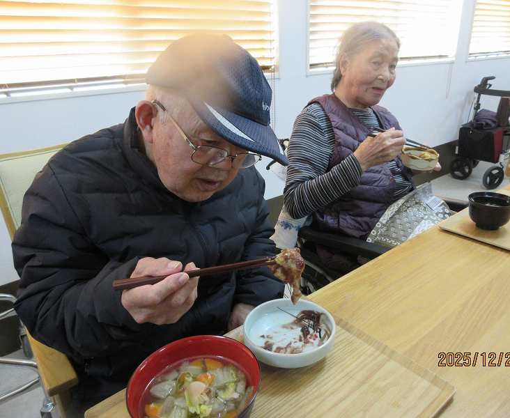 さっそく、つきたて・出来立てのねったぼを暖かい豚汁と一緒にいただきました♪