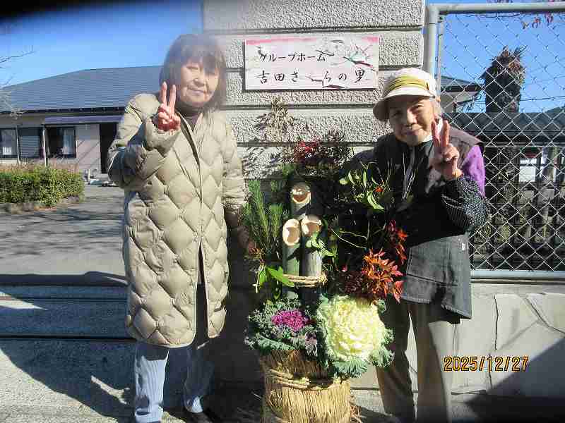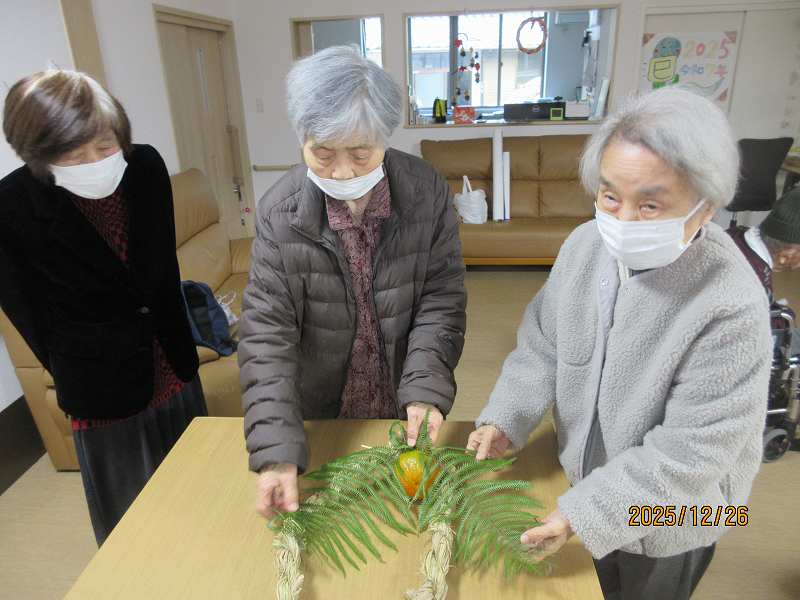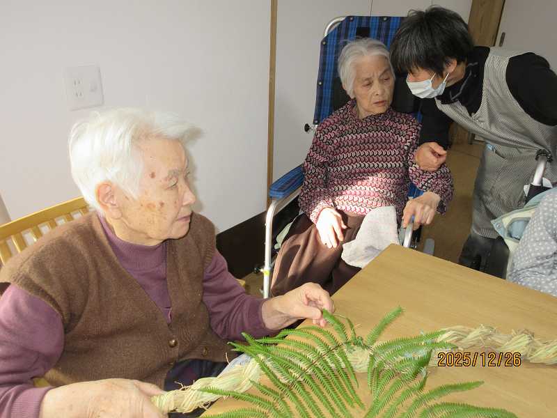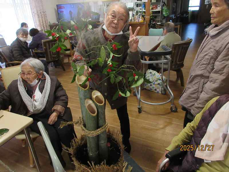 12月27日 デイサービスでもしめ縄を飾り門松作りを行いました🎍