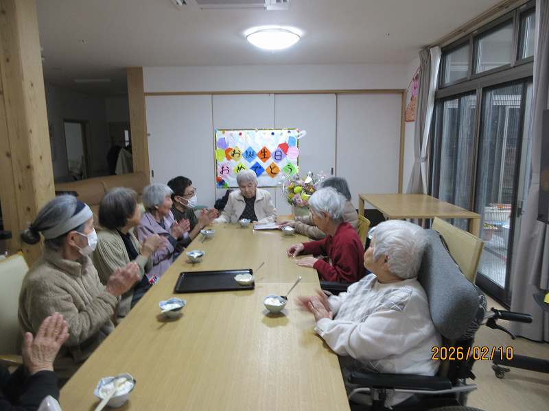 2月10日 🎂お誕生日おめでとうございます♪これからもお元気で、楽しく穏やかな日々にして下さいね✨ 公開済み: 2026年2月11日更新: 2026年2月11日作成者: さくらの里カテゴリー: イベント これからもたくさんの思い出を一緒に作っていきましょう♪ お昼はお祝いのちらし寿司✨ バースデイソングを皆で歌いお祝い🎉少し照れくさそうなご様子でした😊 関連記事 5/21~31日常風景 公開済み: 2022年5月31日更新: 2022年8月23日作成者: さくらの里カテゴリー: イベント 11/27そば作り 年越しそば作りの予行練習 公開済み: 2020年11月30日更新: 2022年7月4日作成者: さくらの里カテゴリー: イベント 3/21~31日常風景 公開済み: 2023年3月31日更新: 2023年5月4日作成者: さくらの里カテゴリー: イベント