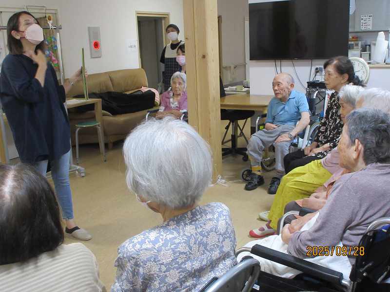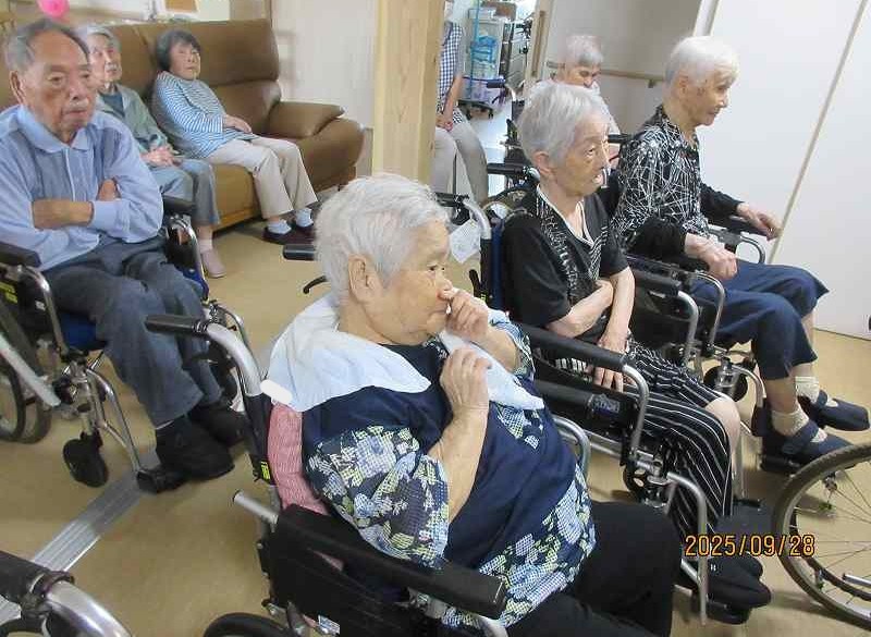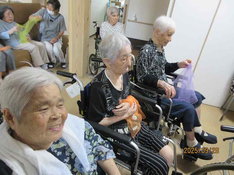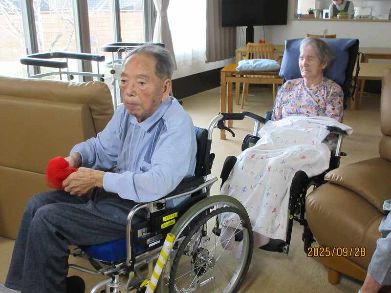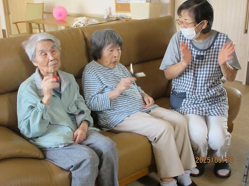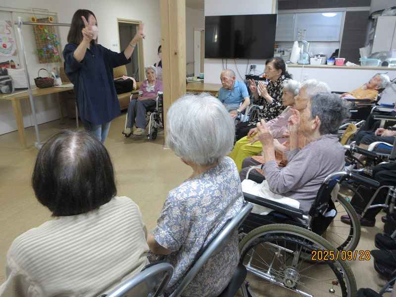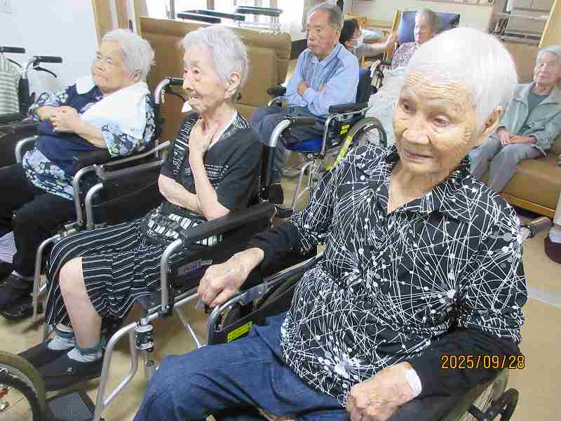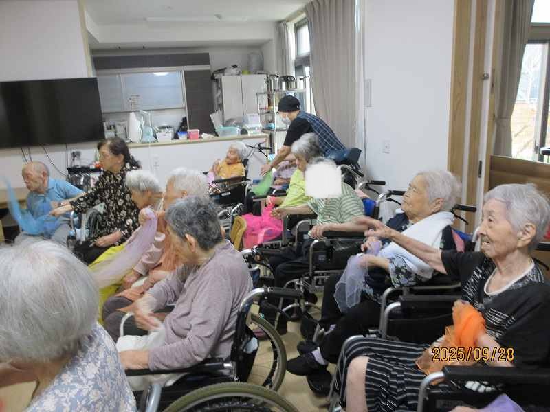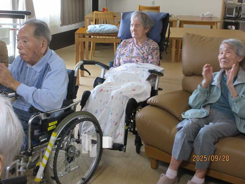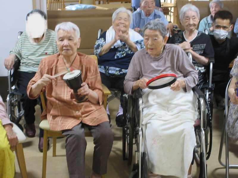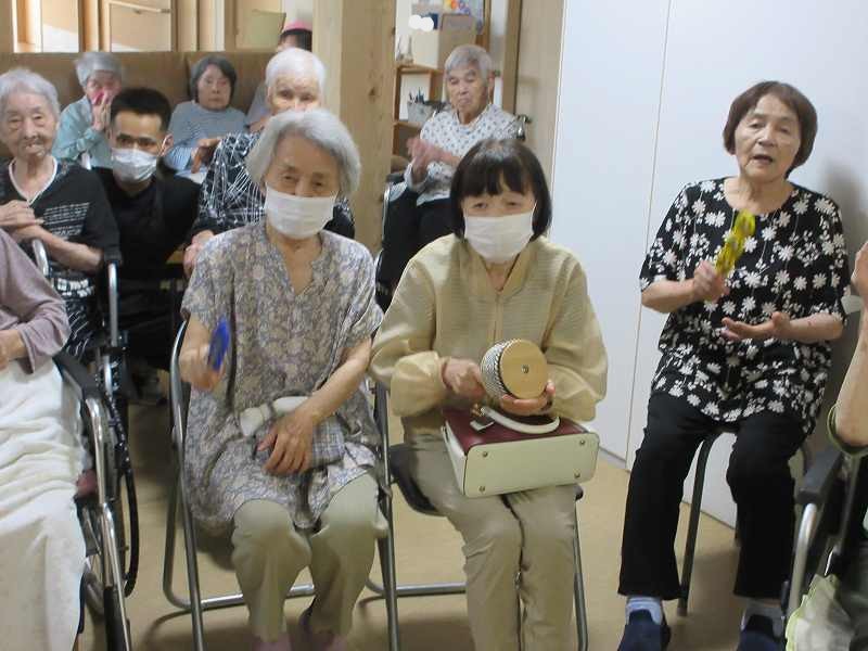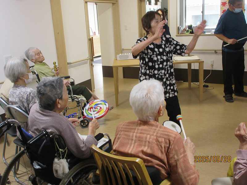 9月28日 🎶グループホームで音楽療法が開催されました🎵 公開済み: 2025年9月28日更新: 2025年9月28日作成者: さくらの里カテゴリー: イベント 続々と集合✨始まる前から楽しみにされていました😊 大きな声をで【パ・タ・カ・ラ】 鳴子や鈴、小楽器を自由に奏でながら♪ リズムにのって指を動かし、体を動かし🎶 リズムに合わせてハンカチーフをフリフリ✨ 様々な楽器を演奏🪘🥁🪇🎼 ダンスタイム😊皆さんも楽器や手拍子で盛り上げて下さっていました✨ 関連記事 1/20誕生会 公開済み: 2022年1月28日更新: 2022年6月9日作成者: さくらの里カテゴリー: イベント 11/13 グランドゴルフ 天気の良い日は心地よい風や日光に浴び、散策しながら下肢筋力アップ😊 公開済み: 2022年11月25日更新: 2022年11月29日作成者: さくらの里カテゴリー: イベント 2月11日~2月20日 日常風景😊 日中の冷え込みも一段落とはいえ、まだまだ寒い日が続きそうですね💦 公開済み: 2025年2月20日更新: 2025年2月20日作成者: さくらの里カテゴリー: イベント