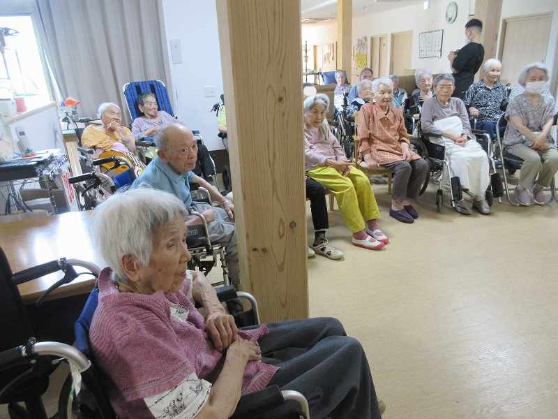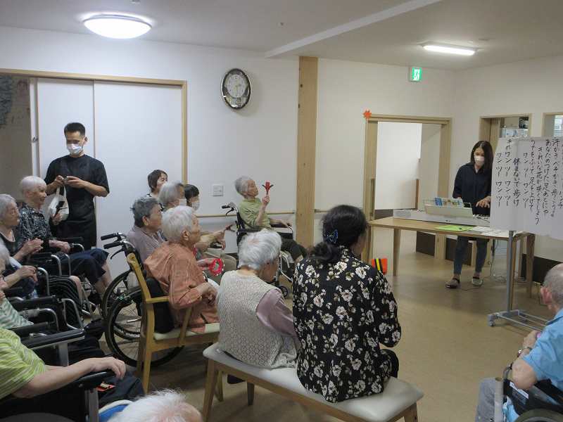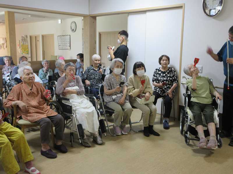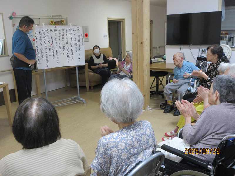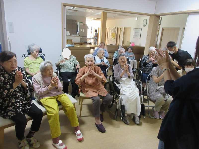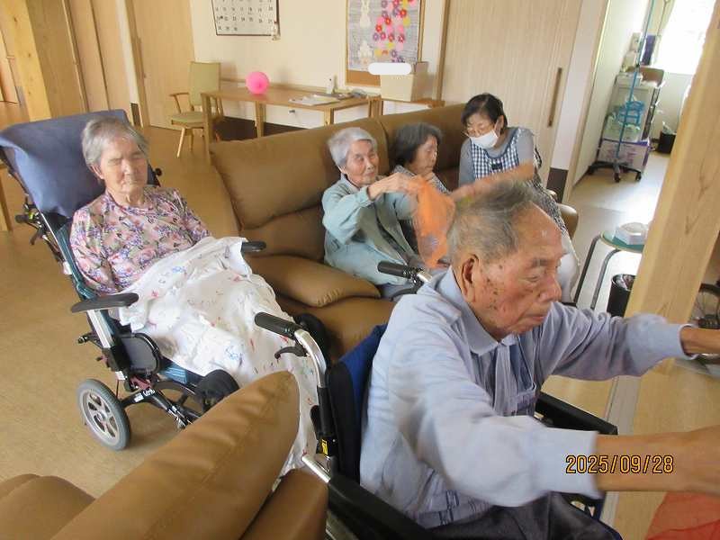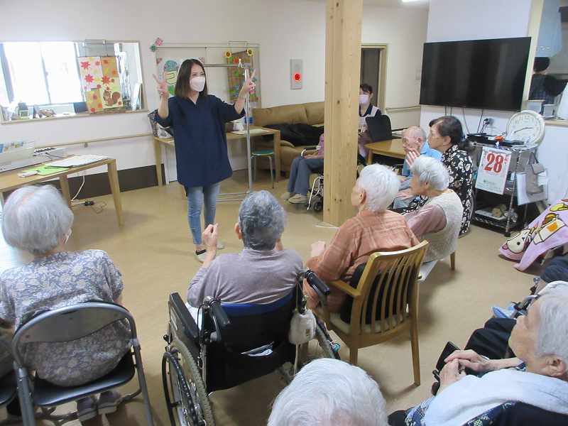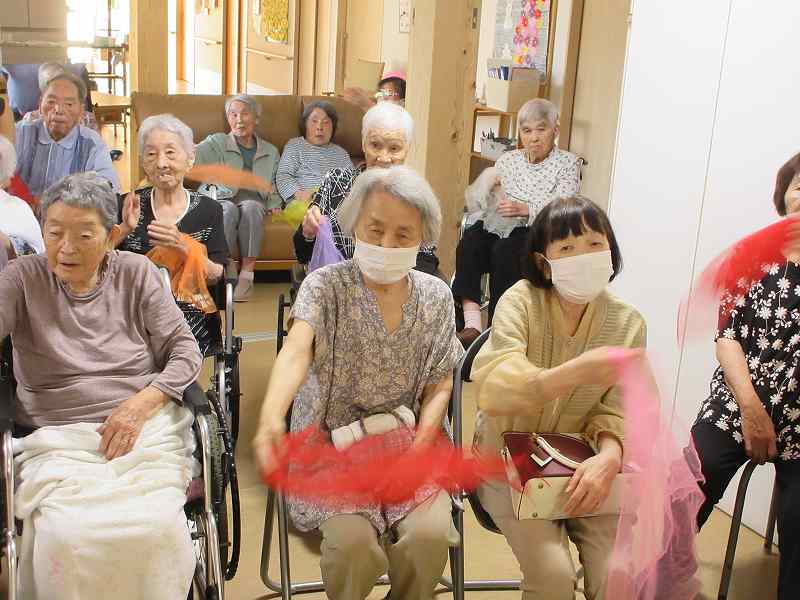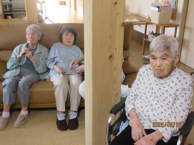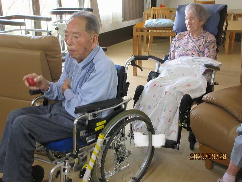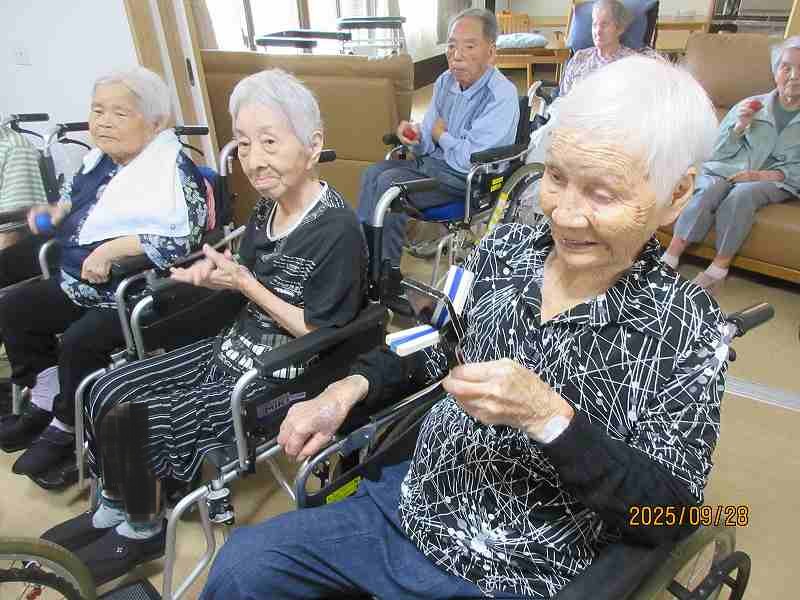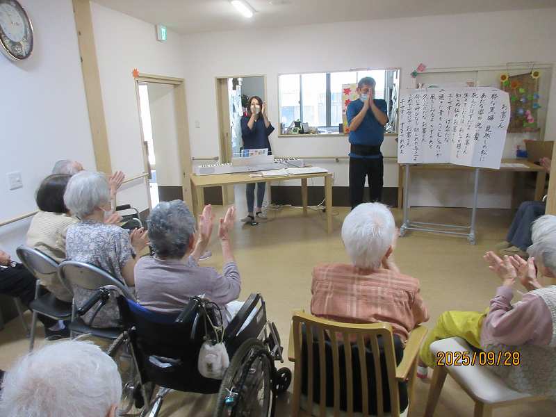 9月28日 🎶グループホームで音楽療法が開催されました🎵 公開済み: 2025年9月28日更新: 2025年9月28日作成者: さくらの里カテゴリー: イベント 続々と集合✨始まる前から楽しみにされていました😊 大きな声をで【パ・タ・カ・ラ】 鳴子や鈴、小楽器を自由に奏でながら♪ リズムにのって指を動かし、体を動かし🎶 リズムに合わせてハンカチーフをフリフリ✨ 様々な楽器を演奏🪘🥁🪇🎼 ダンスタイム😊皆さんも楽器や手拍子で盛り上げて下さっていました✨ 関連記事 1/20誕生会 公開済み: 2022年1月28日更新: 2022年6月9日作成者: さくらの里カテゴリー: イベント 11/13 グランドゴルフ 天気の良い日は心地よい風や日光に浴び、散策しながら下肢筋力アップ😊 公開済み: 2022年11月25日更新: 2022年11月29日作成者: さくらの里カテゴリー: イベント 2月11日~2月20日 日常風景😊 日中の冷え込みも一段落とはいえ、まだまだ寒い日が続きそうですね💦 公開済み: 2025年2月20日更新: 2025年2月20日作成者: さくらの里カテゴリー: イベント