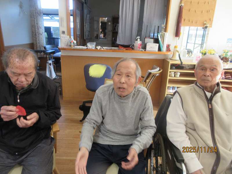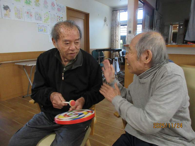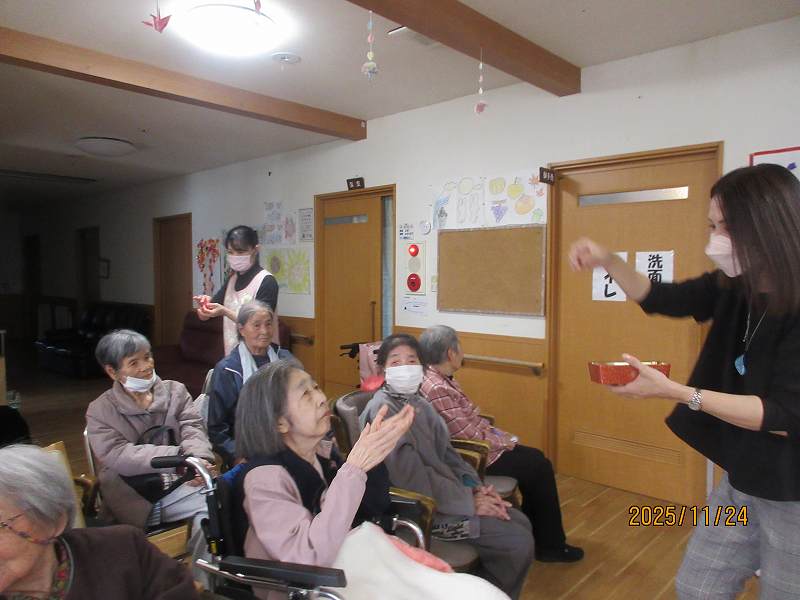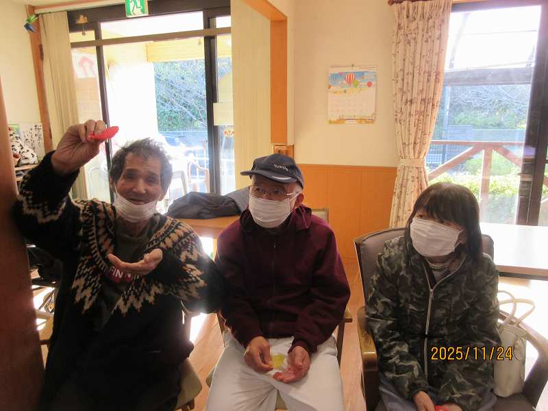 ご自身やお隣さん同士で葉を上から落とし、楽しんでおられました😊