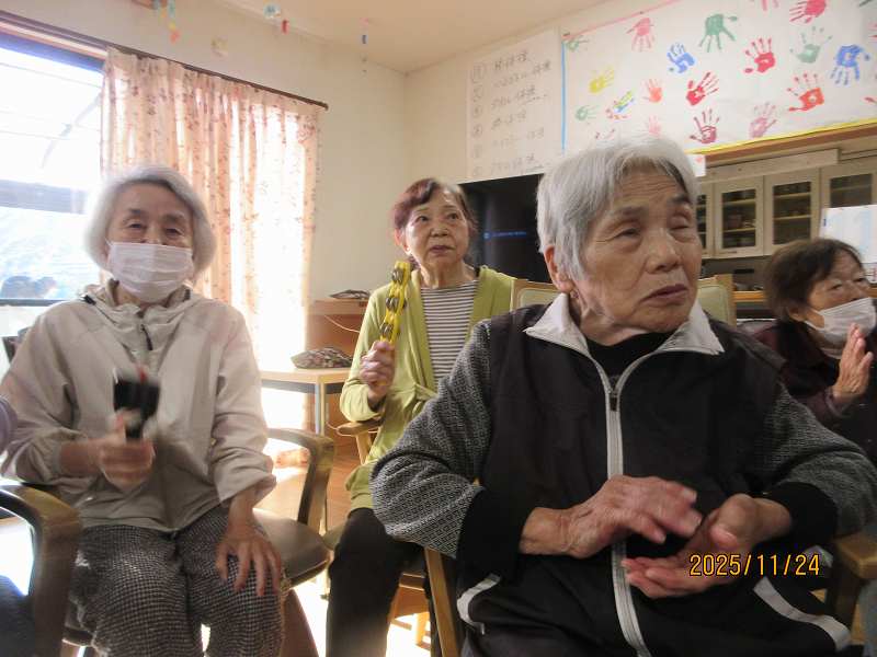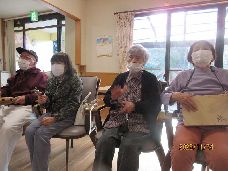 小楽器を奏でながら『三六五歩のマーチ』♪