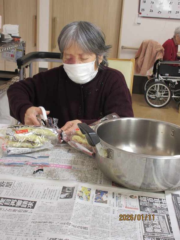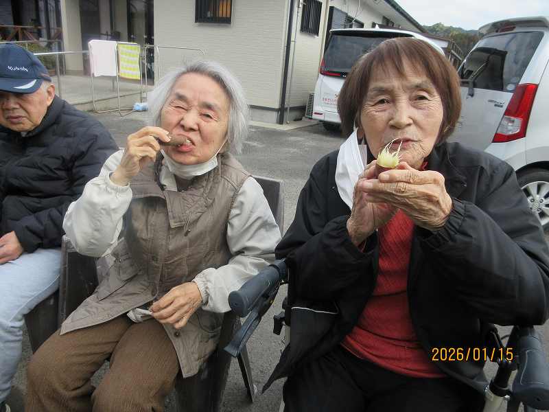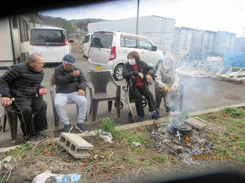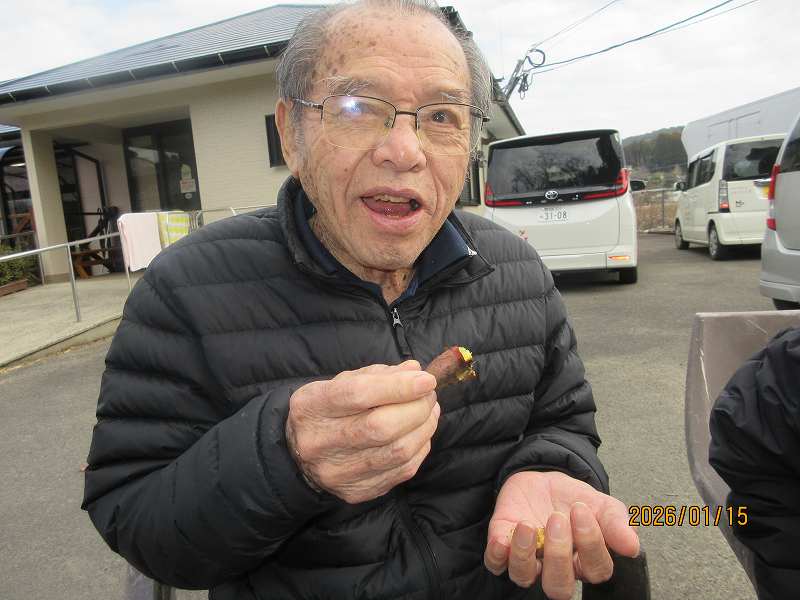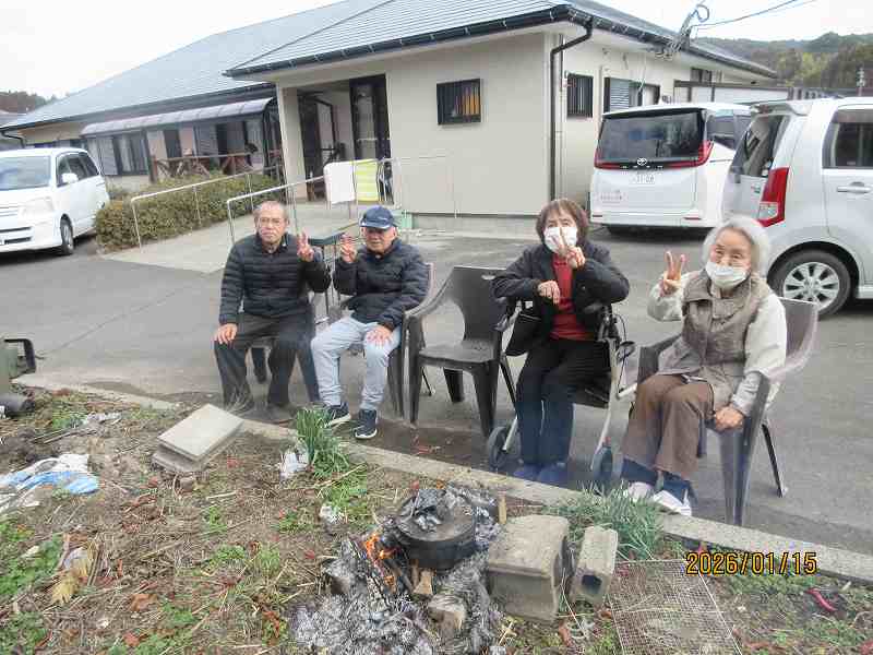 デイサービス🌸日常風景 焼き芋🍠焼き上がりを待ちながら火の回りで暖をとっておられました😊