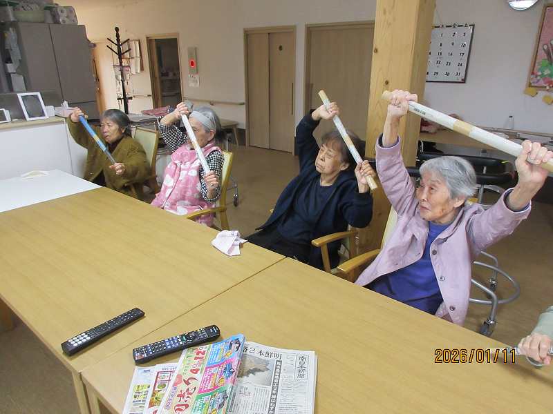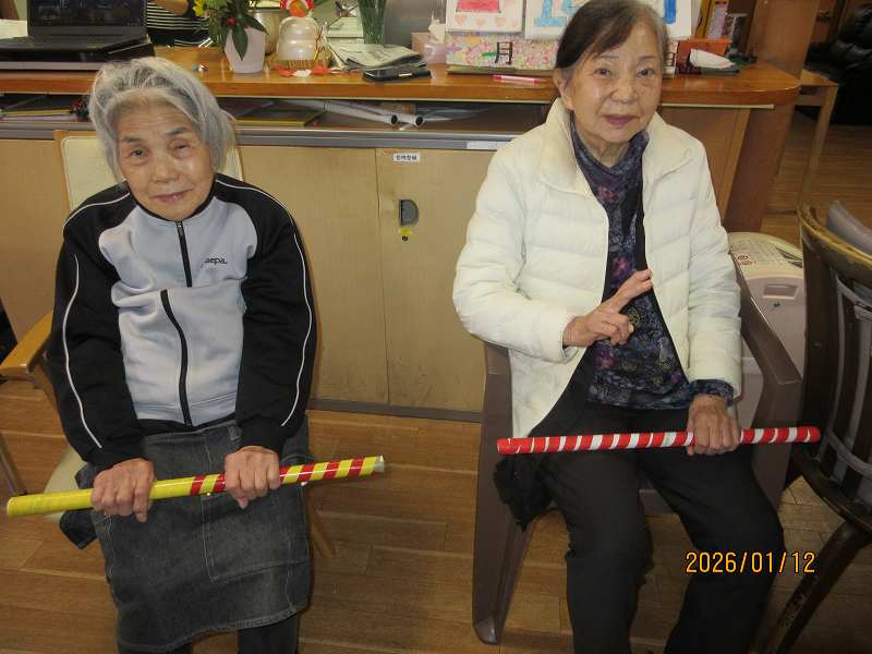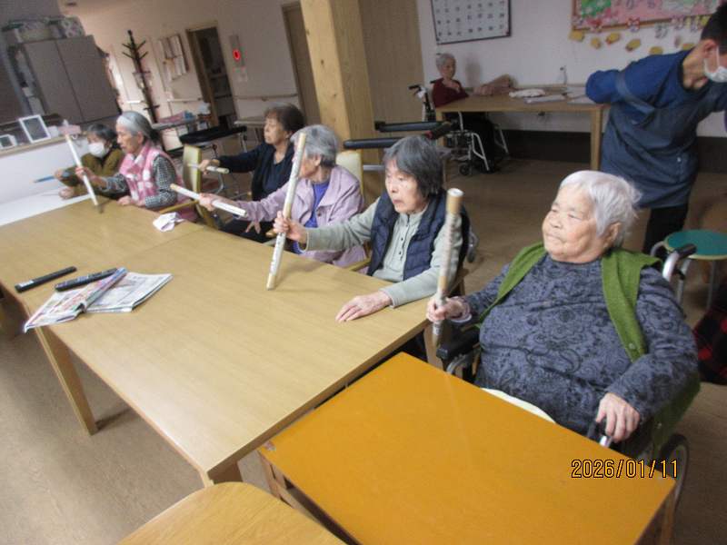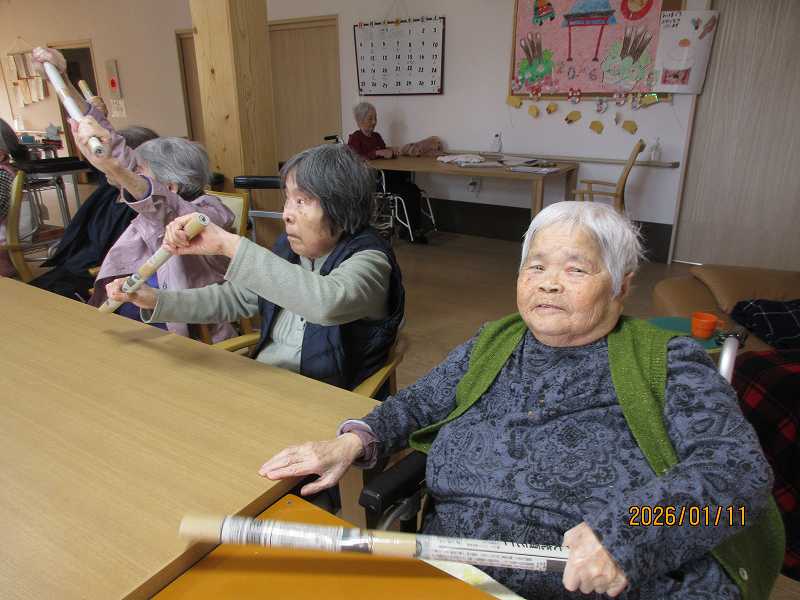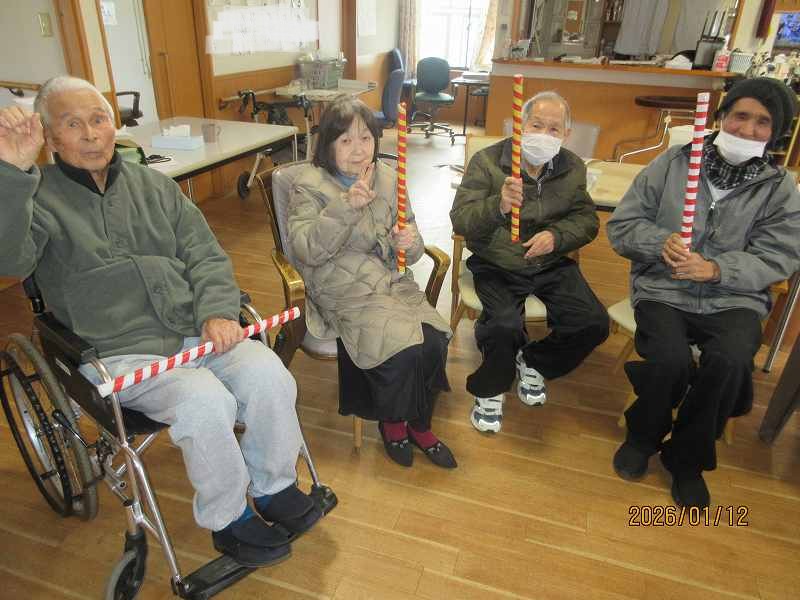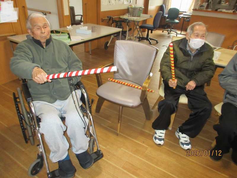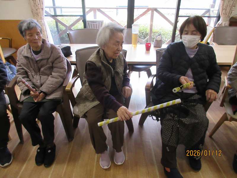 集団レク♪棒を使って紐渡し✨隣の方とタイミングを合わせて!!!