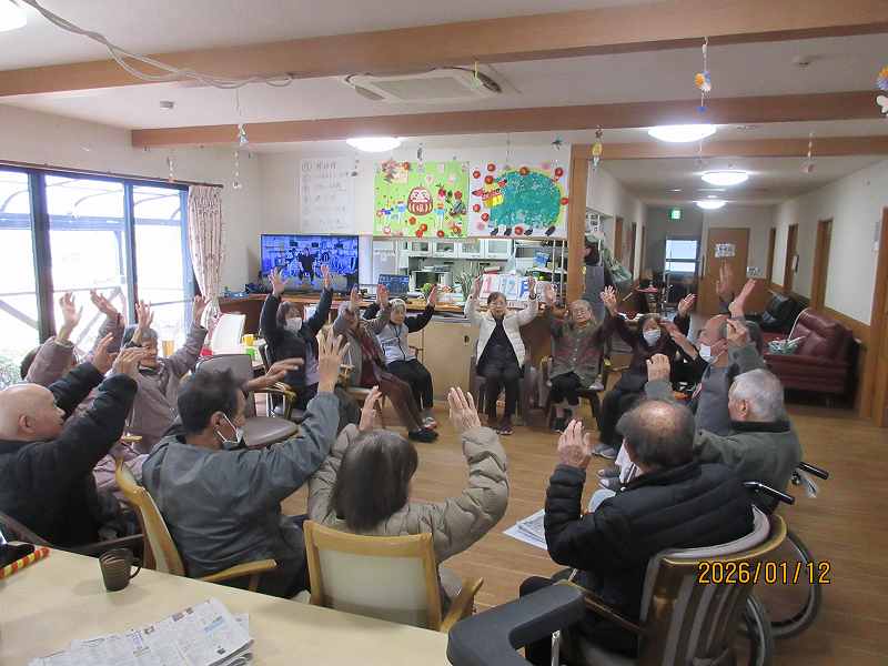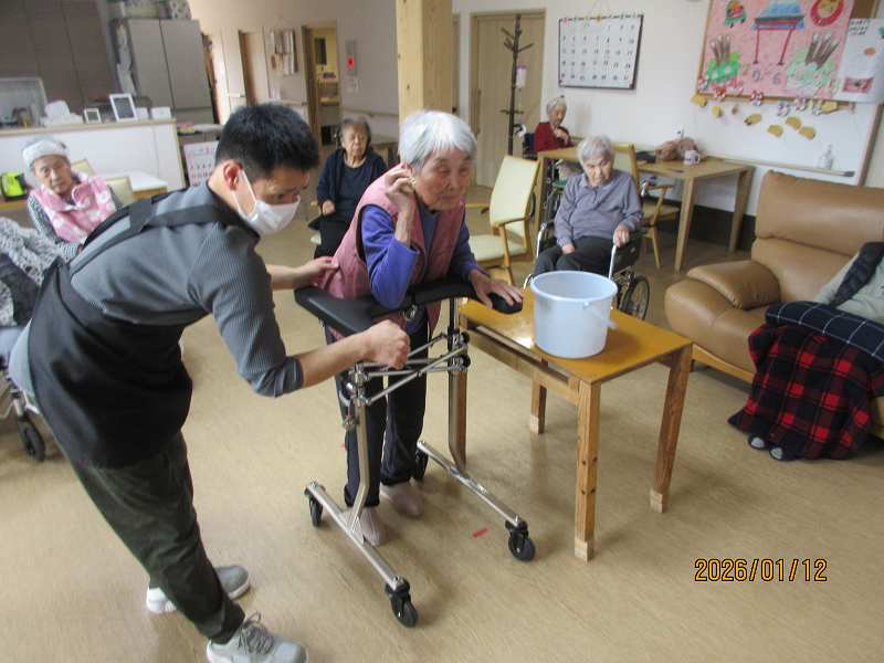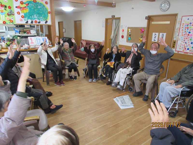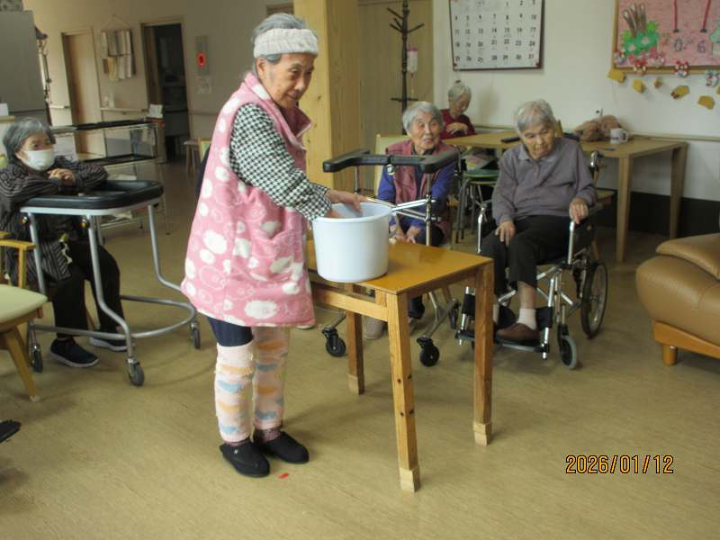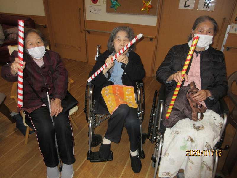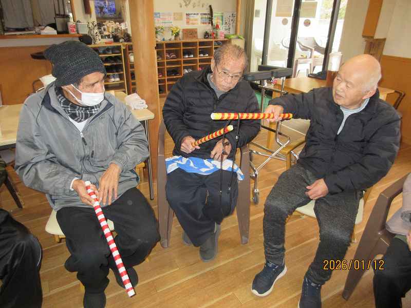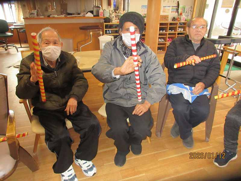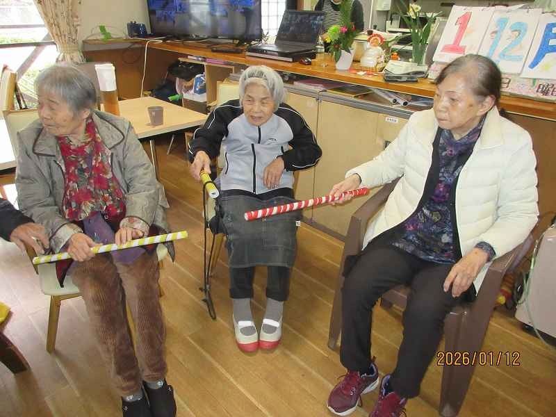 集団レク♪棒を使って紐渡し✨隣の方とタイミングを合わせて!!!