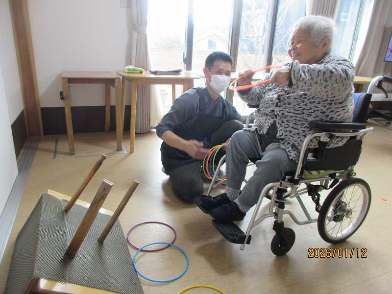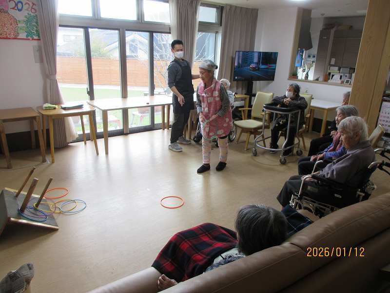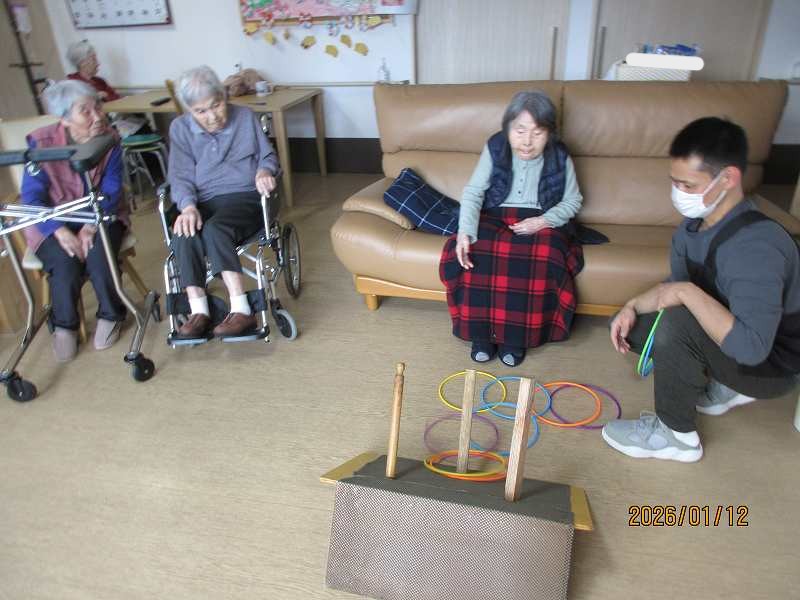 輪投げ⭕入ったら喜び、外れたら悔しがり一喜一憂されていました😊
