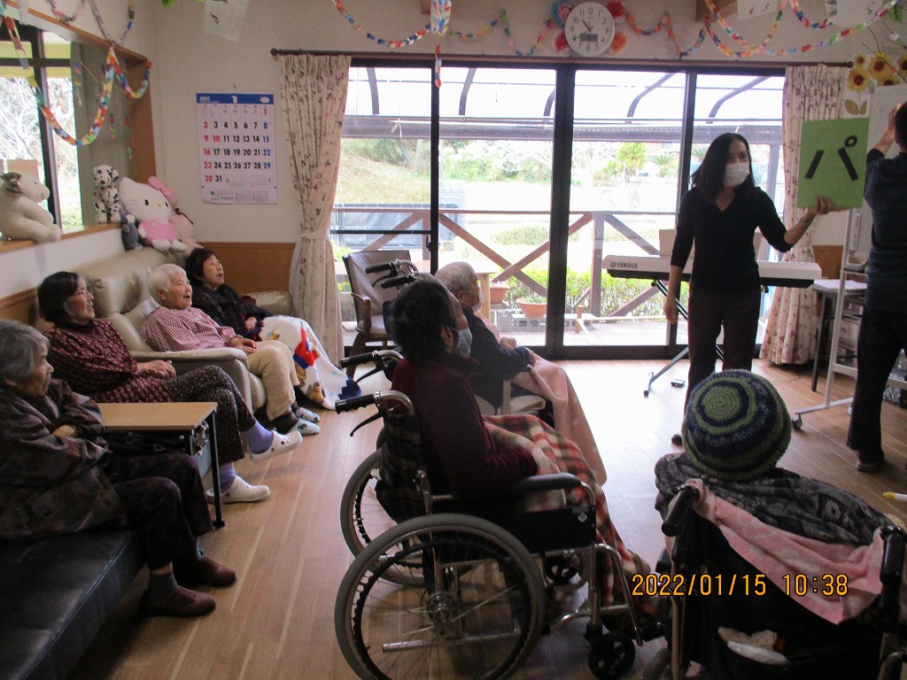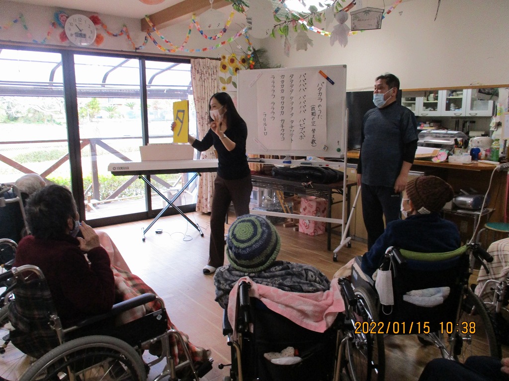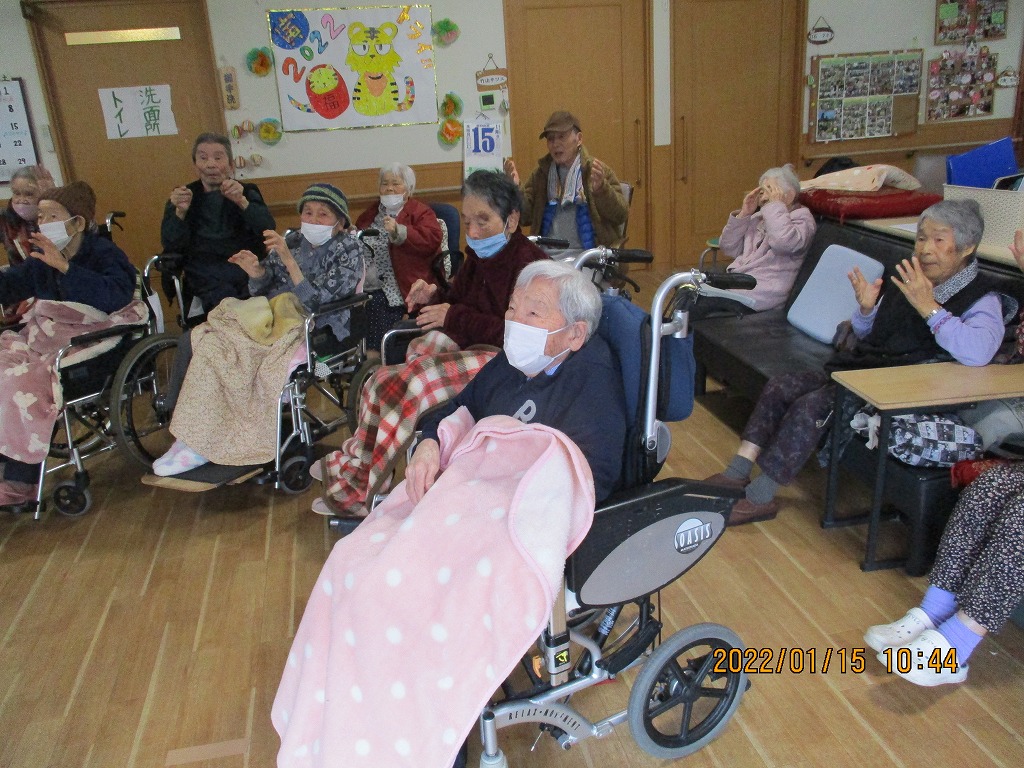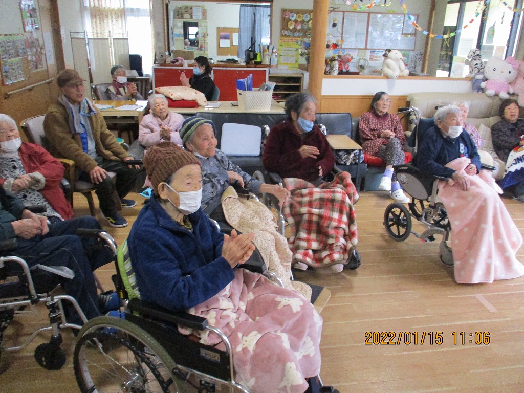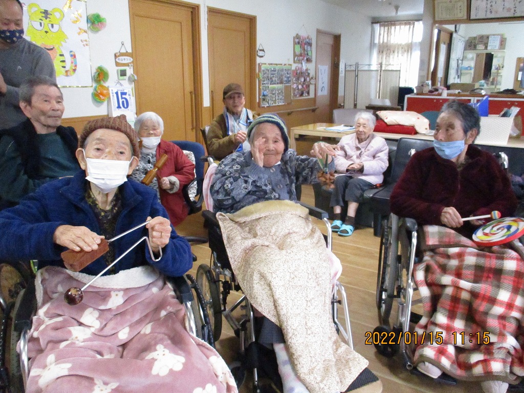 1/15坂中先生による音楽療法 今回も「楽しかったぁ~」「もう終わったの?」と皆さん時間が過ぎるのがとても早く感じるようです。毎回楽しみにされております。 公開済み: 2022年1月28日更新: 2022年6月9日作成者: さくらの里カテゴリー: イベント 関連記事 2月日常風景15~28日 公開済み: 2021年2月28日更新: 2022年7月1日作成者: さくらの里カテゴリー: イベント 11/1~5日常風景 りおちゃんが皆さんに会いに来てくれました😊皆さんも笑顔笑顔。高菜の漬物は今回もとっても美味しいものができ、三日で食べ終わりました。 公開済み: 2023年11月20日更新: 2023年11月23日作成者: さくらの里カテゴリー: イベント 5/24防災訓練・・・急きょ消防の立ち合いなしになりましたが、設備業者の立会いのもと訓練を行いました。災害時の避難訓練・・・ご利用者の身体状況など考え誘導等を見直すことができました。今後も定期的に訓練を行い、皆様に安心して過ごして頂けるよう努めて参りたいと思います。 公開済み: 2022年5月28日更新: 2022年5月28日作成者: さくらの里カテゴリー: イベント