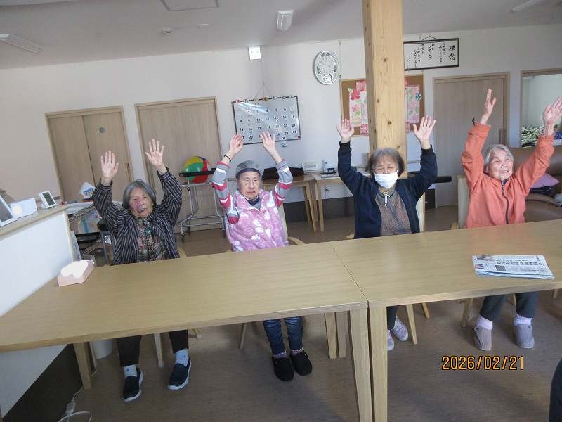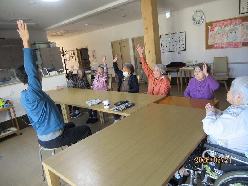 グループホーム🌸日常風景 軽体操♪みなさんよく腕があがっていますね😊