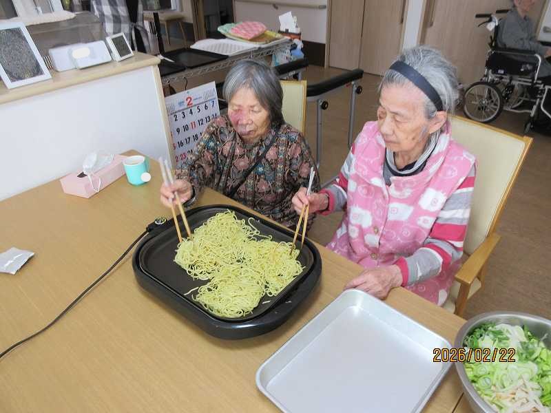 焼きそばづくり♪野菜もたっぷり入れて✨