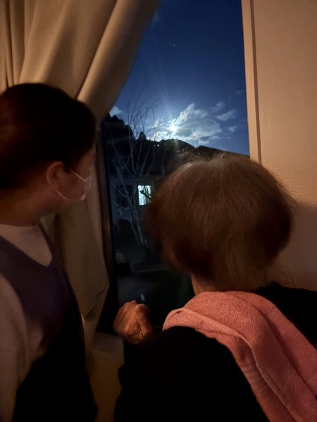 室内からも見えました✨写真ではわかりずらいですが、かけ始めを見ることができました♪(カメラの性能と月明りで明るく見えますが、外は真っ暗です。)
