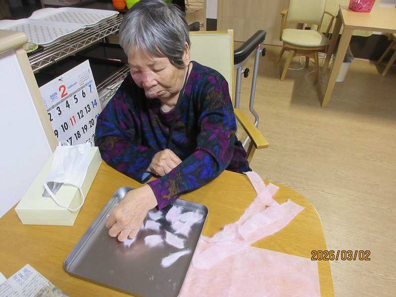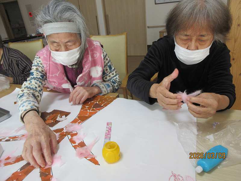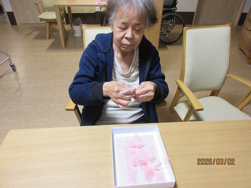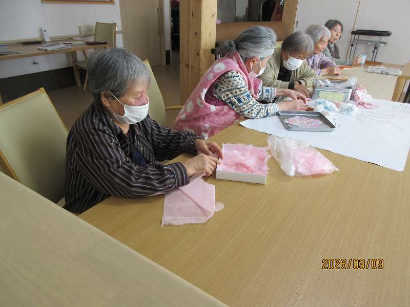 グループホーム🌸日常風景 4月壁面制作♪春といえば桜ですかね~🌸どんな作品ができるか楽しみです😊