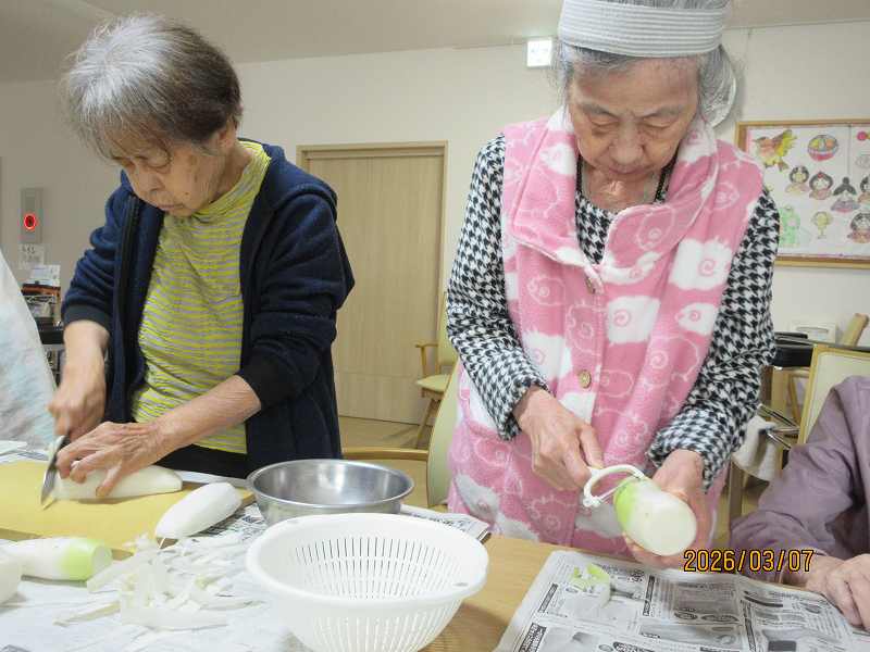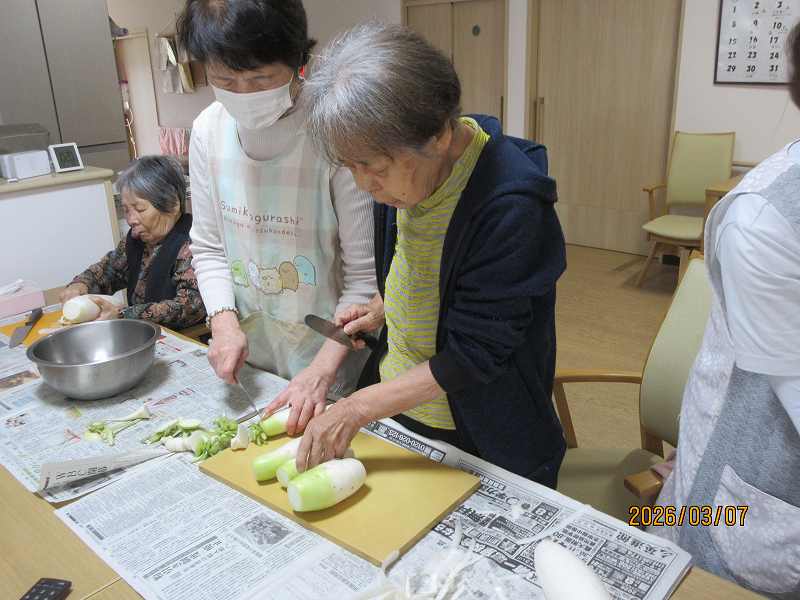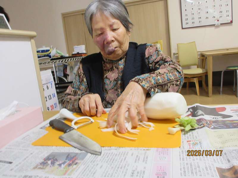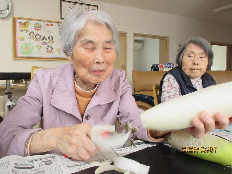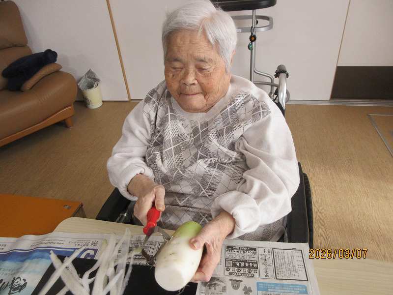 グループホーム🌸日常風景 大根をたくさんいただきました😊みんなで下ごしらえし、煮物にしました✨