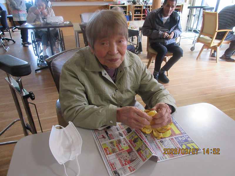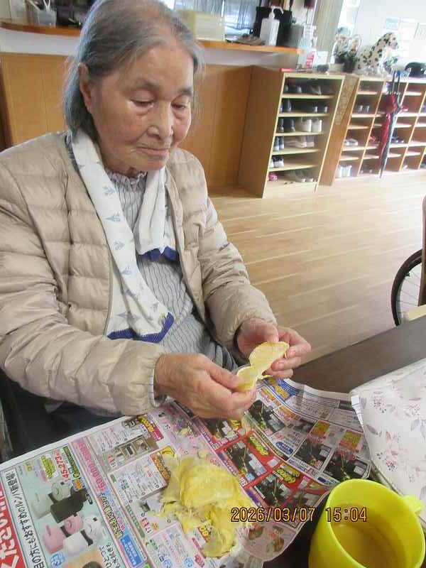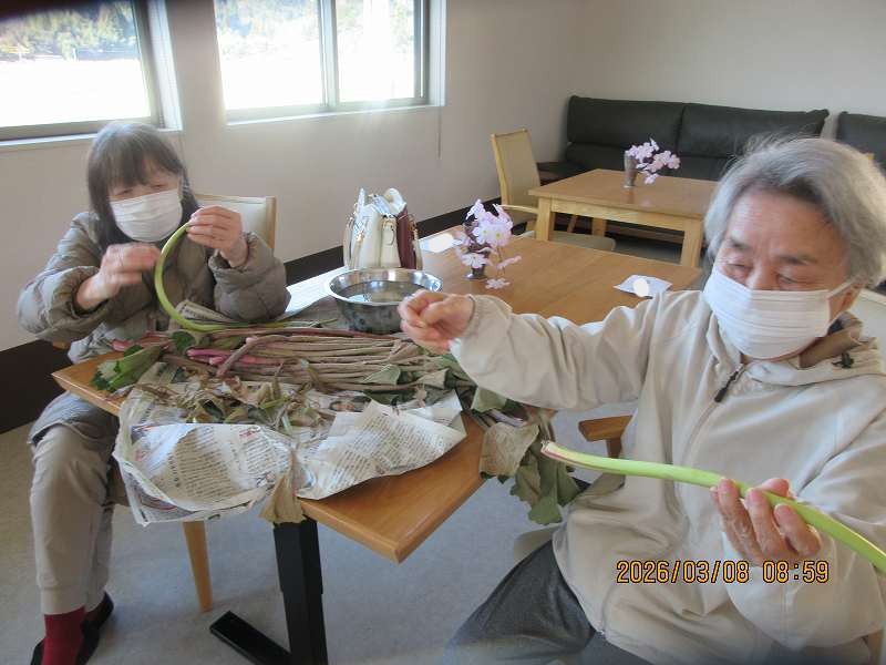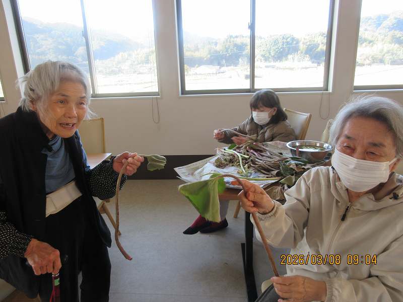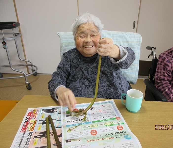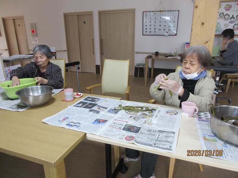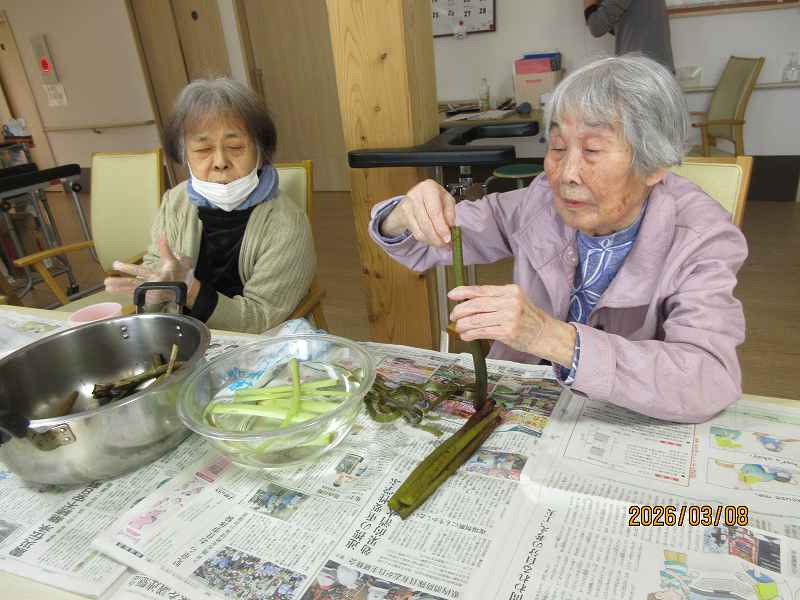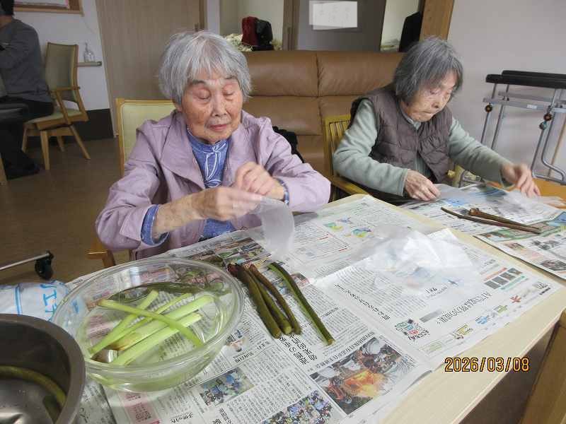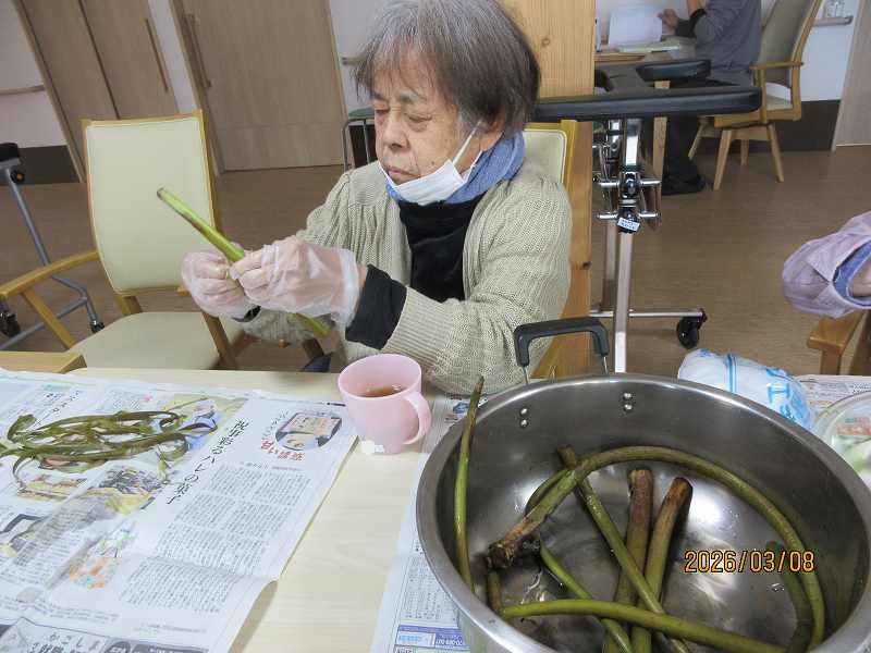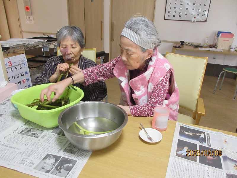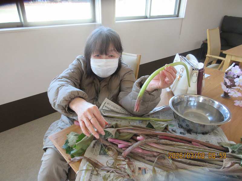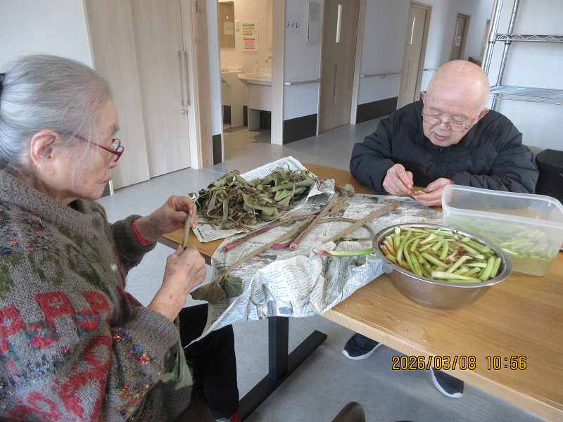 有料老人ホーム🌸日常風景 こちらでもツワの皮むきをしていただきました♪なにを作りましょうかね♪