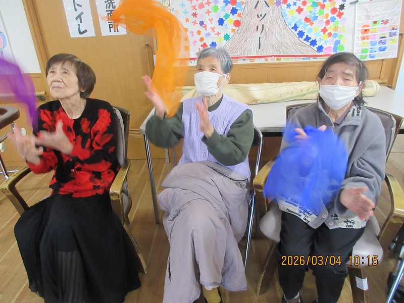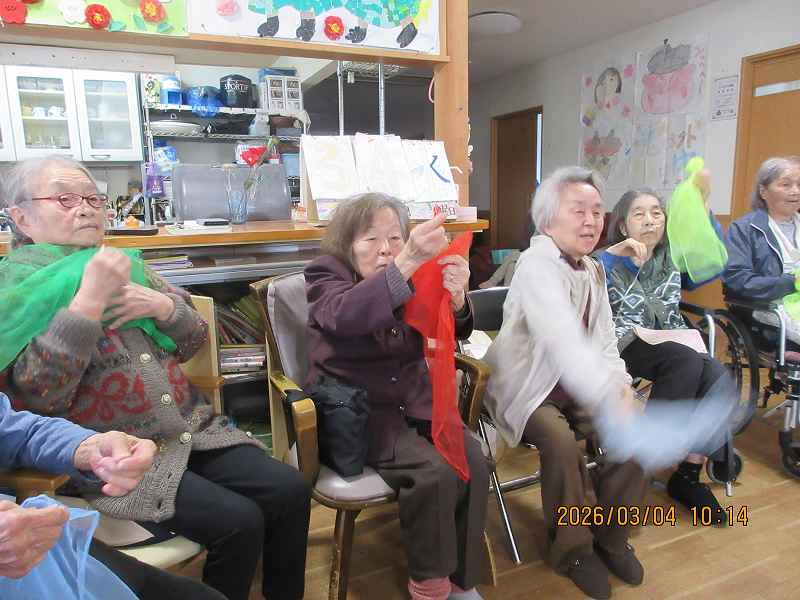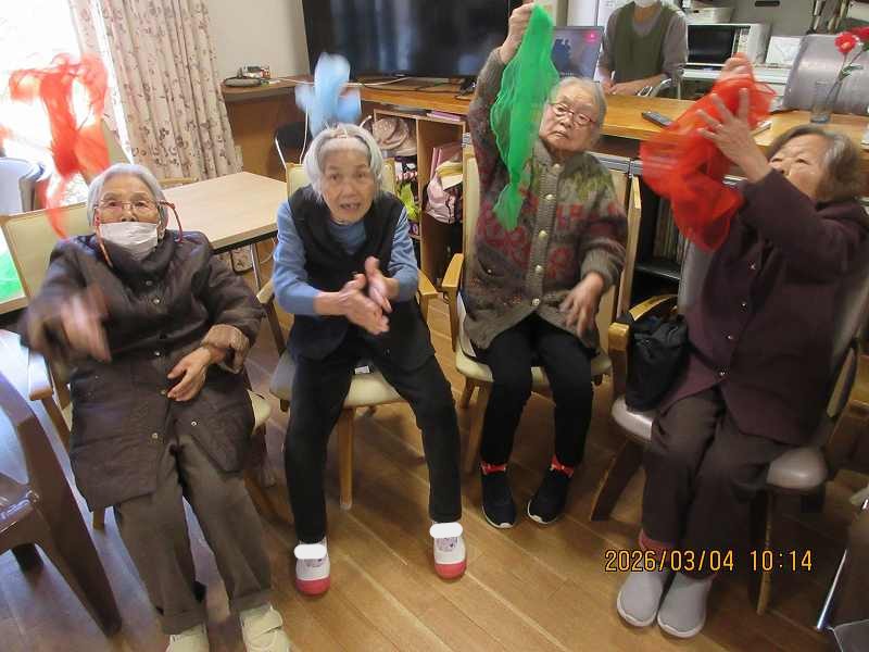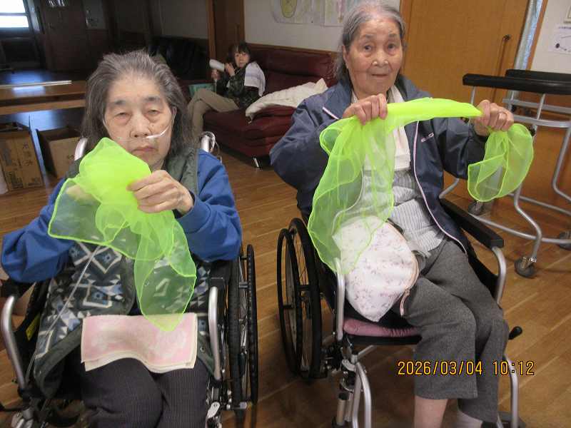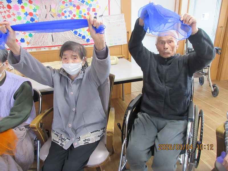 スカーフを使って集団レクリエーション ~軽体操♪