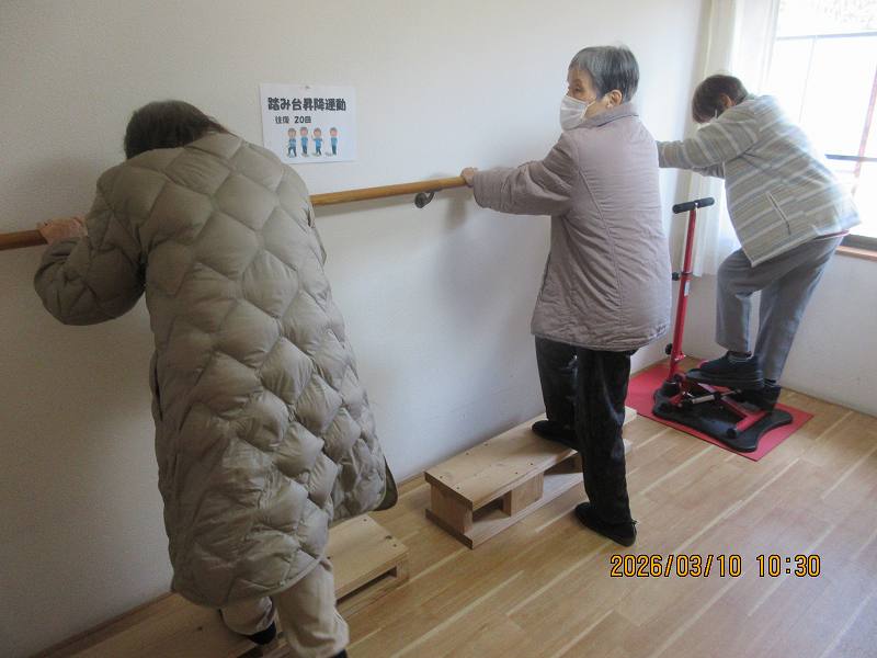 デイサービス🌸日常風景 踏み台昇降で下肢筋力強化✨