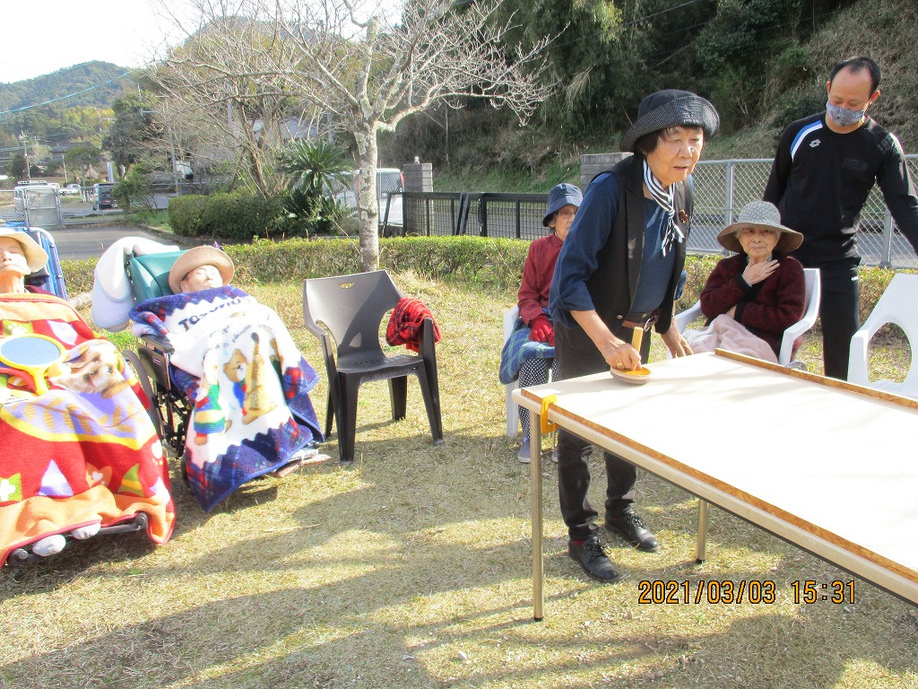 3/3ひな祭り 今日も体力づくりは欠かせません 公開済み: 2021年3月22日更新: 2022年7月1日作成者: さくらの里カテゴリー: イベント 関連記事 11/16、19 しょうよう君・りおちゃん 今日もパワーを頂きました。みんなを笑顔に😊 また遊びに来てね😊 公開済み: 2022年11月20日更新: 2022年11月30日作成者: さくらの里カテゴリー: イベント 中庭で焼き芋をおこないました🍠出来立ての焼き芋は熱々ホカホカで大好評でした🍠 公開済み: 2024年11月15日更新: 2024年11月22日作成者: さくらの里カテゴリー: イベント 「私に任してごらん!」と・・・恐る恐る手渡すと思わずビックリ!! あっという間にきれいになりました。ありがとうございました。? 公開済み: 2021年5月18日更新: 2022年10月20日作成者: さくらの里カテゴリー: イベント